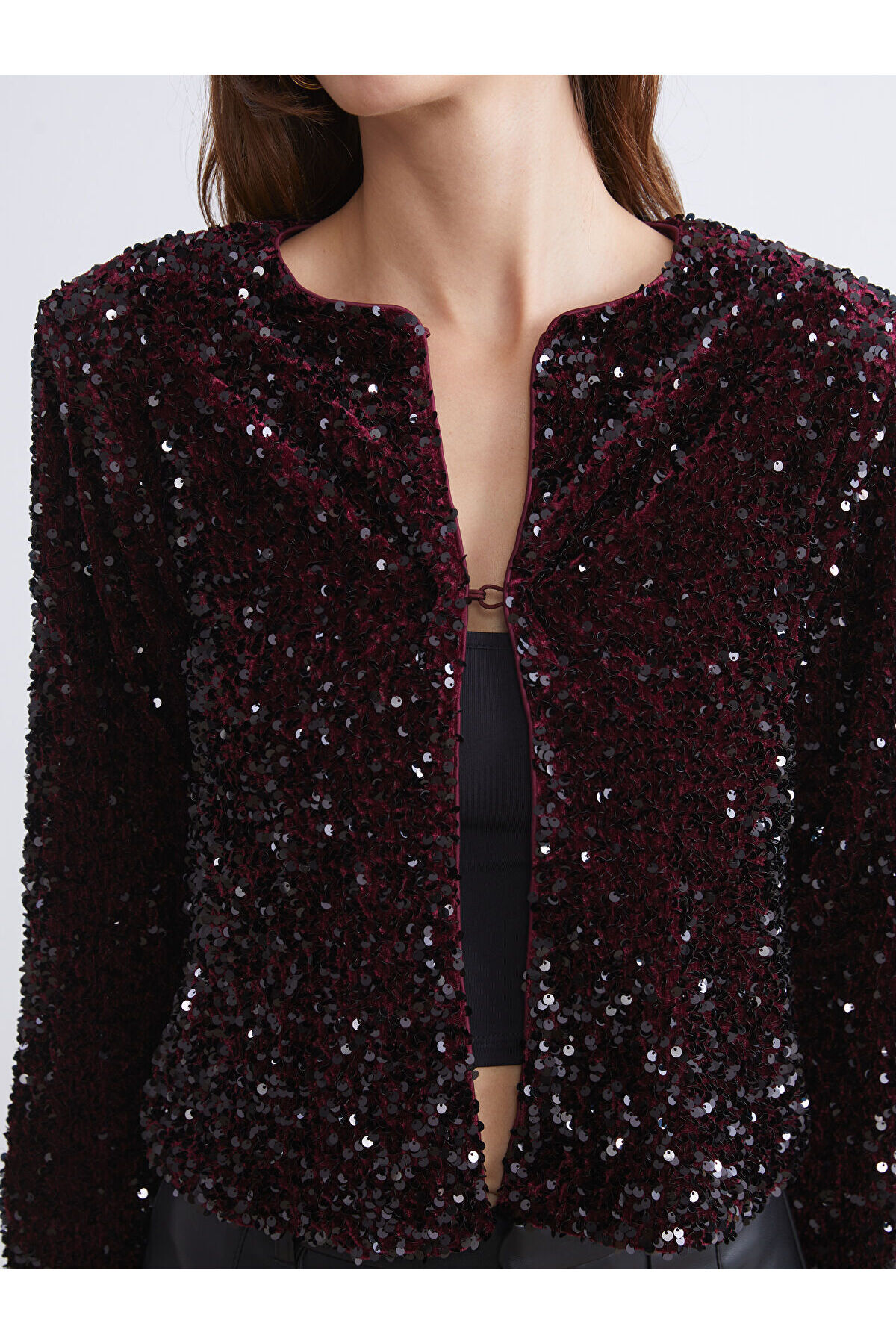 Bordo Bisiklet Yaka Pul Payetli Kadın Ceket