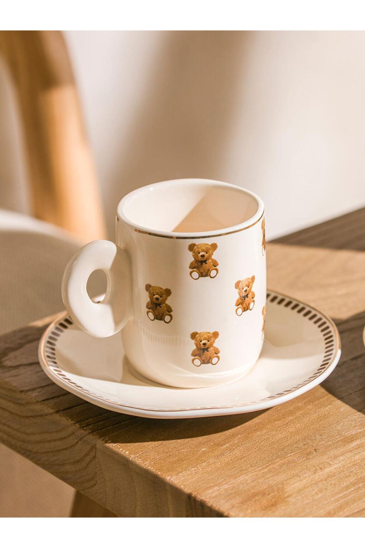 Karişik Ayı Teddy Baskılı 2 Kişilik Porselen Kahve Fincan Takımı 90 Ml (W5)