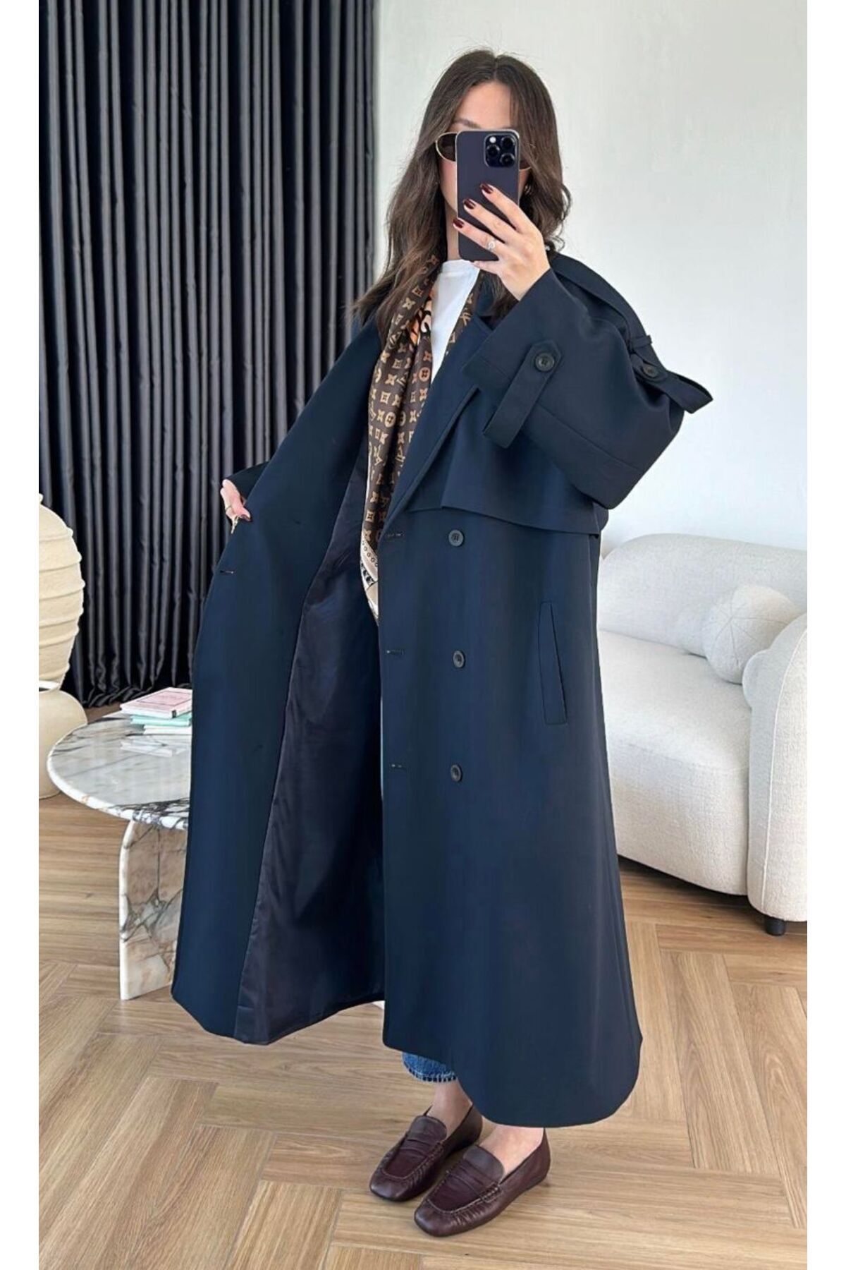 Omuzu Uzun Apoletli Premium Kalite Trençkot
