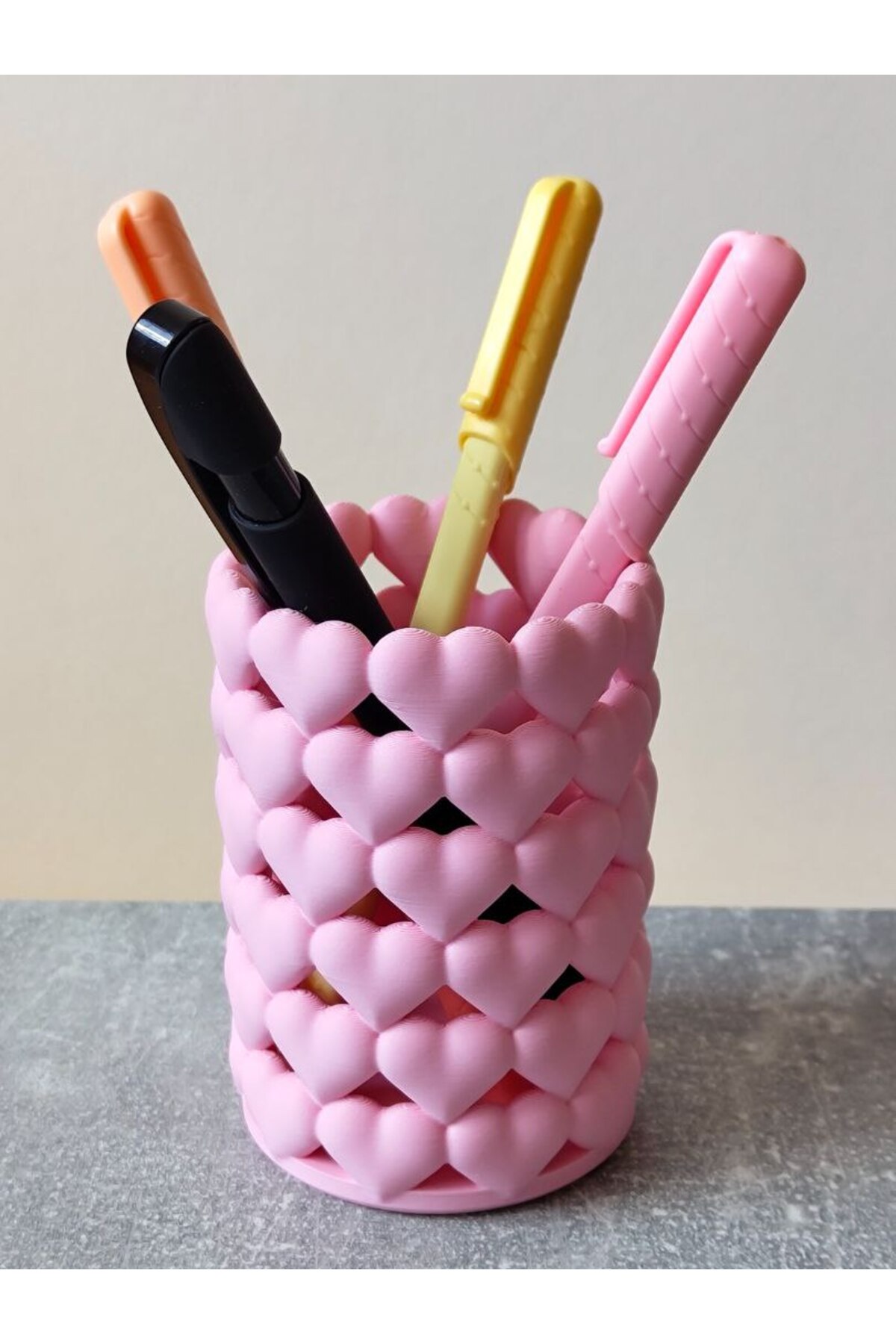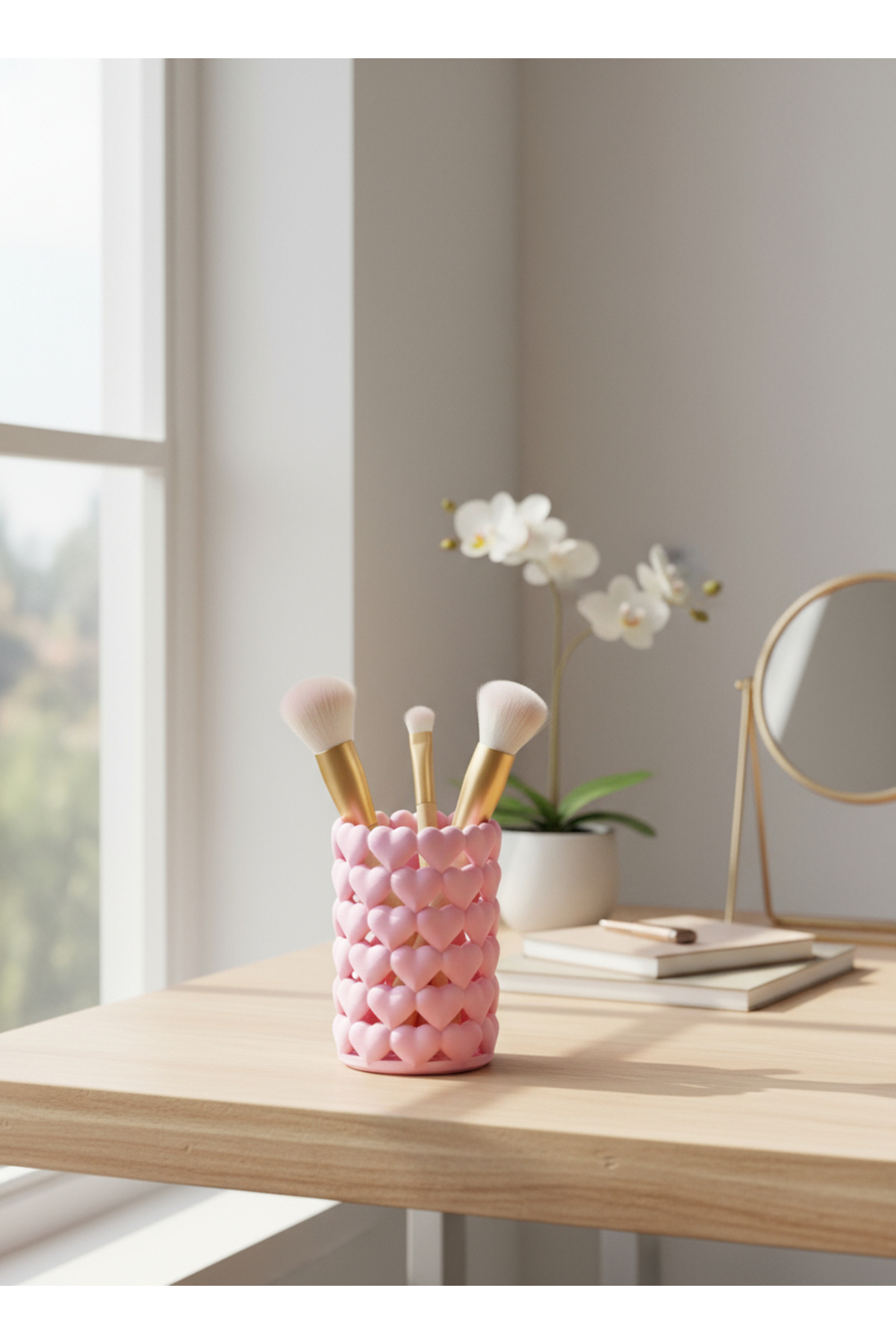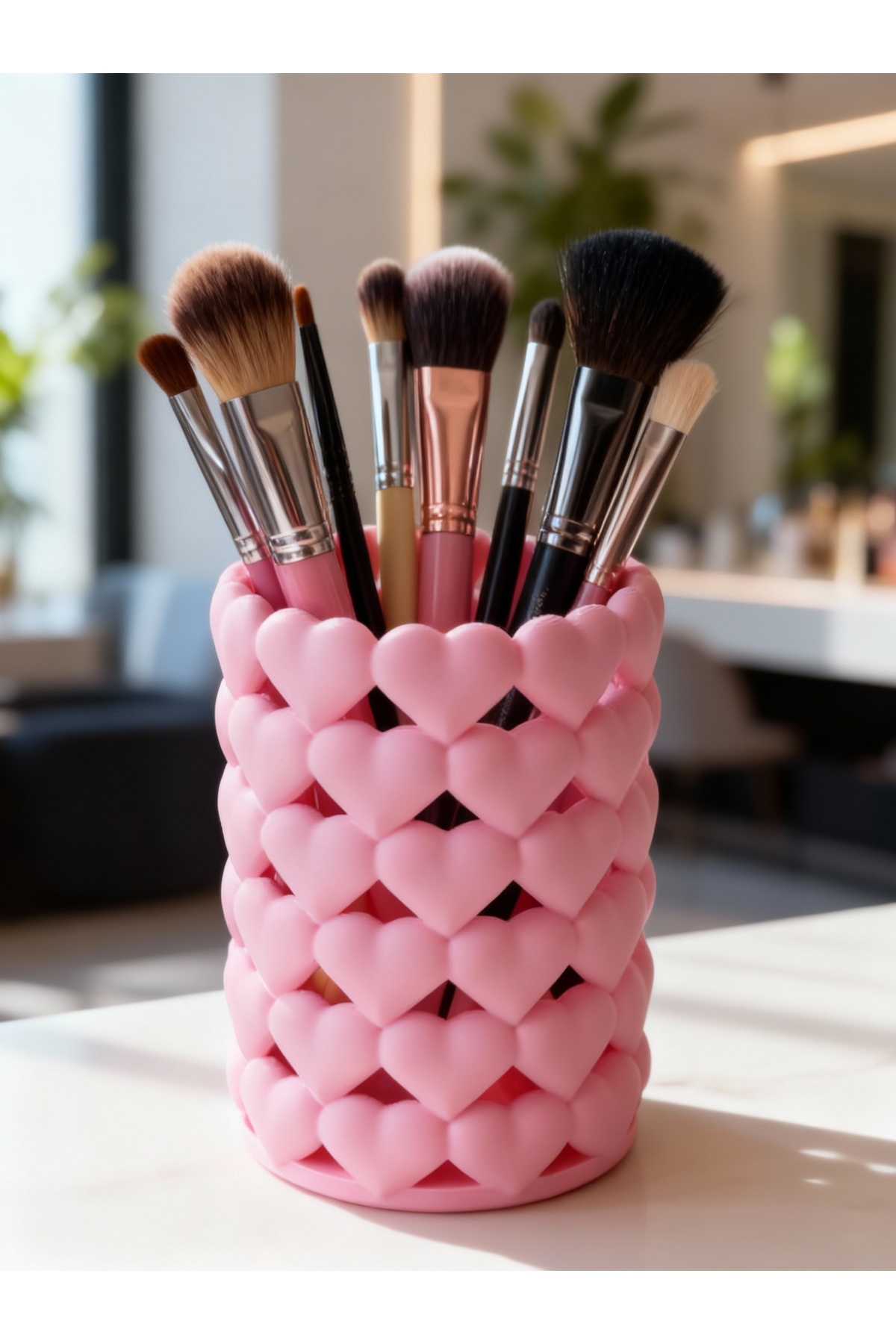 Bu kalpli pembe organizer, ister makyaj fırçalarınızı, ister kalemlerinizi ya da ofis aksesuarlarınızı saklayın — her kullanım alanında estetik bir düzen sağlar.