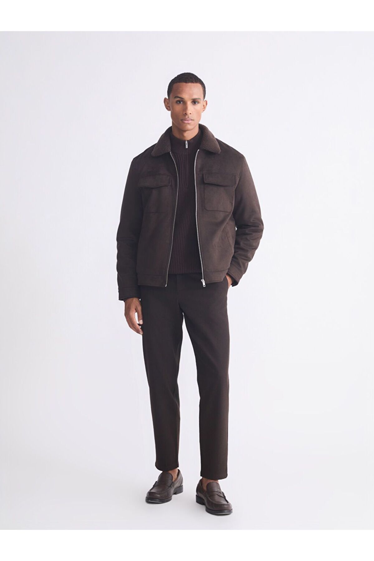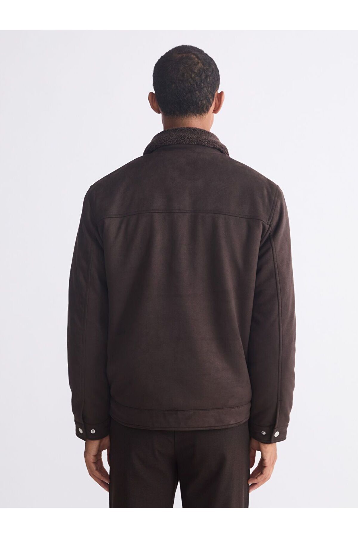 Ürün AçıklamasıSlim fit kesime sahip erkek mont, gömlek yaka detaylı olarak tasarlanmış olup süet görünümlü kumaştan üretilmiştir.