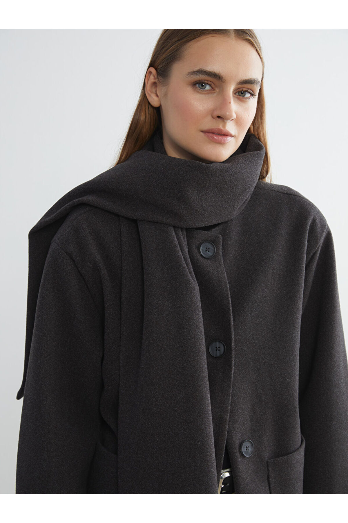 LCWAIKIKI ClassicAntrasit Çıkarılabilir Şal Yaka Kadın Kaşe Kaban