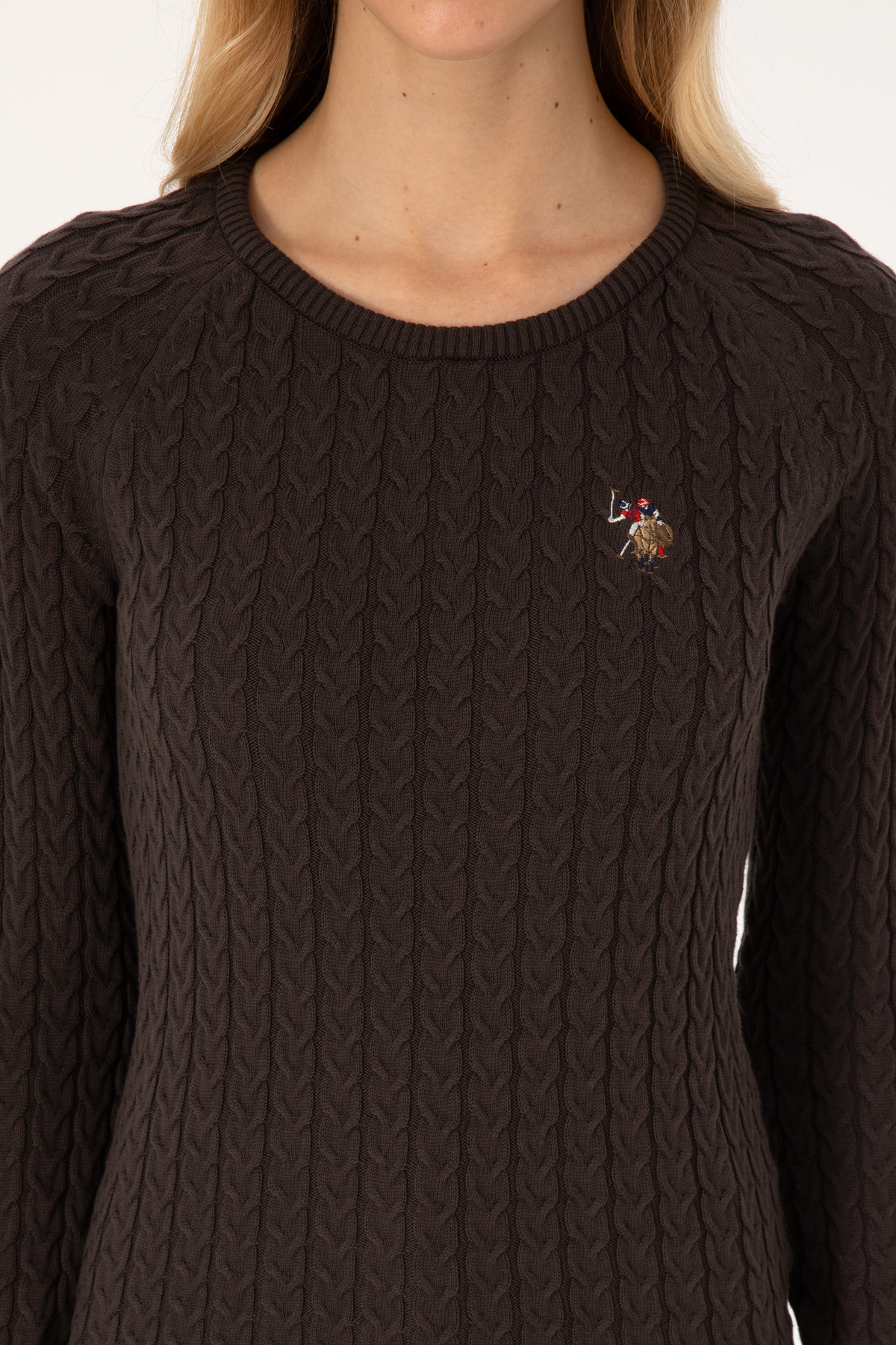 Kadın Koyu Kahverengi Bisiklet Yaka Basic Kazak 50307728-VR084