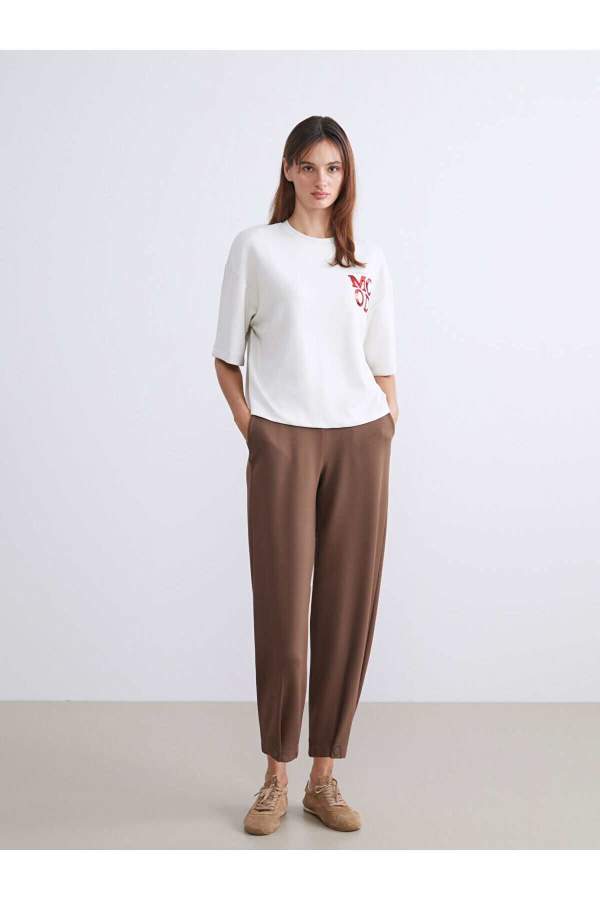 Ürün detaylarında marka: lcw vision - ürün tipi: eşofman altı - cinsiyet: kadın - kalıp: loose & bol - kumaş: interlok - desen: düz - uzunluk: bilek boy - kalınlık: orta kalınlık - bel fiti: beli lastikli - paça fiti: daralan paça özellikleri bulunmaktadır.