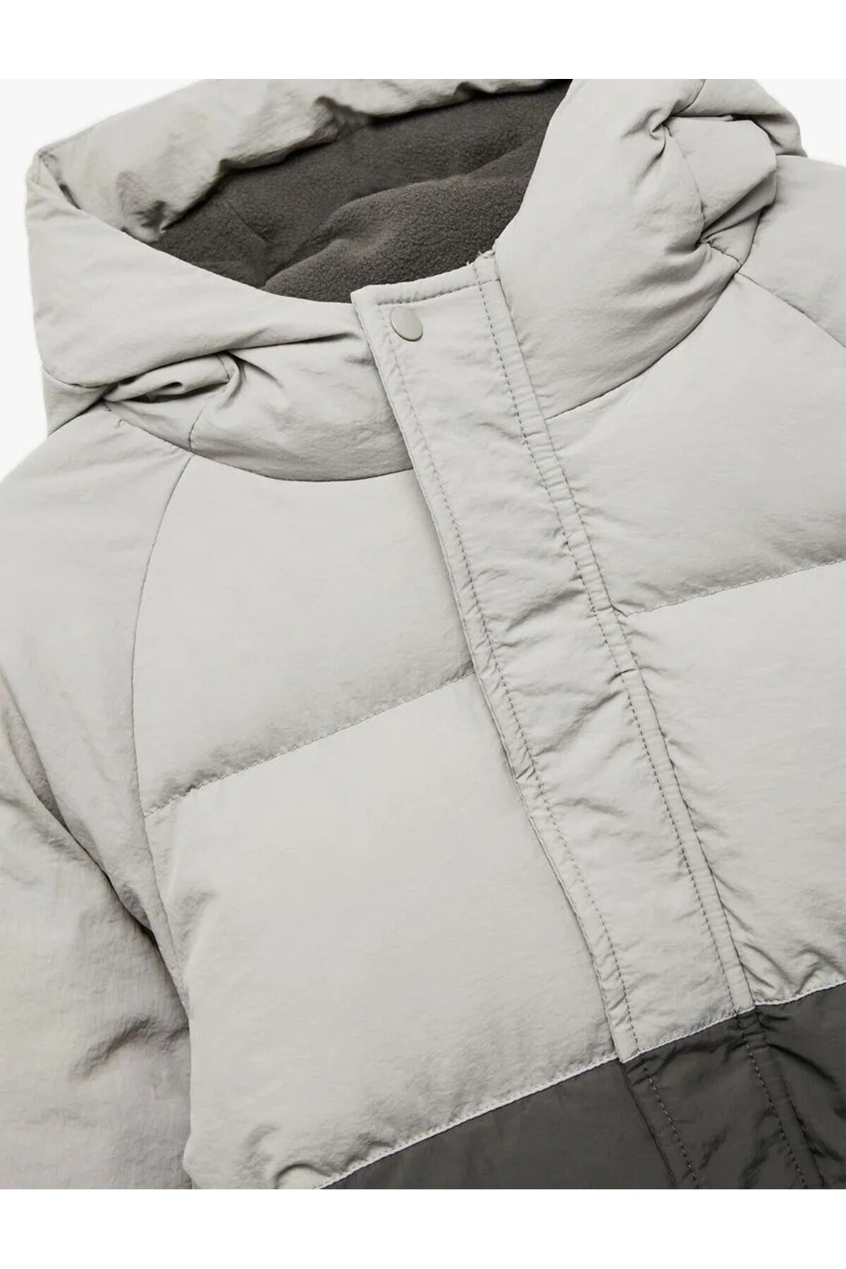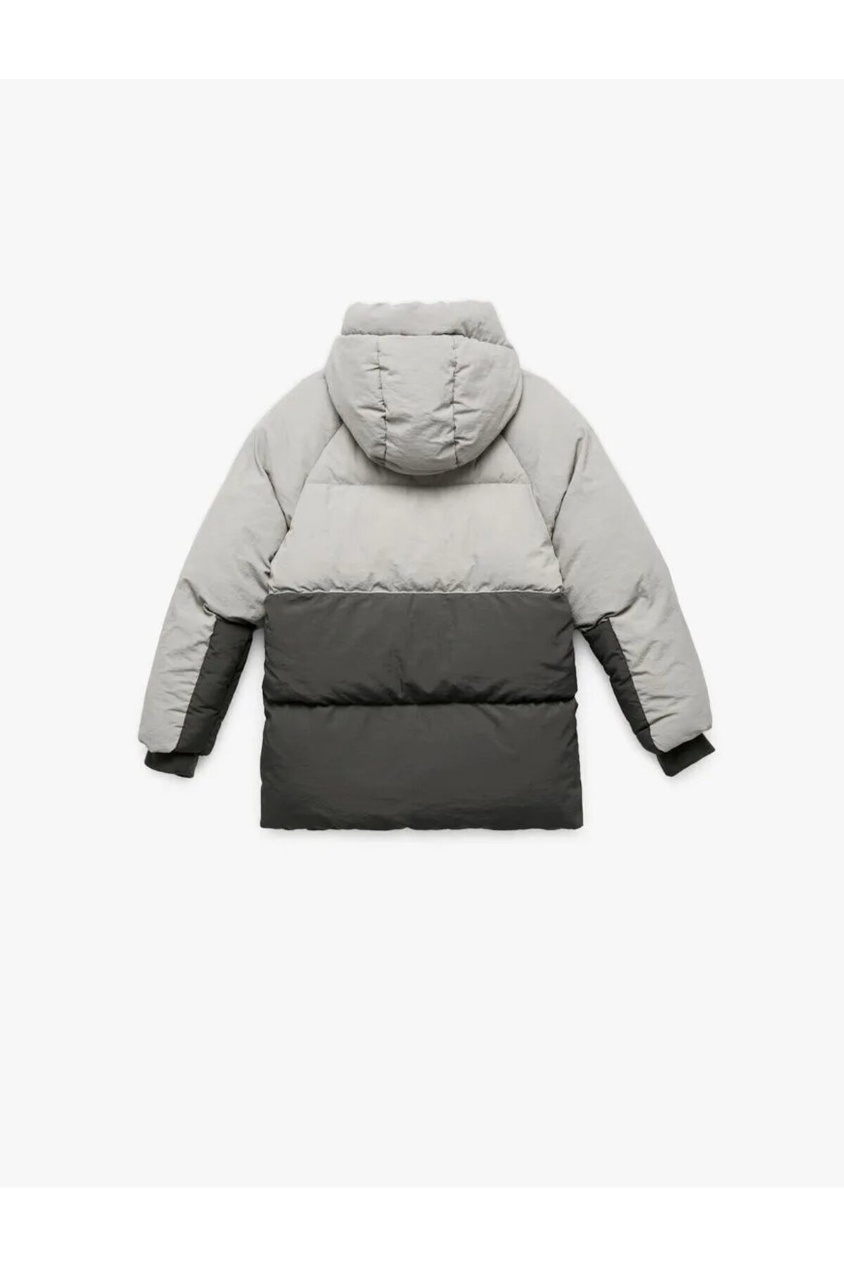 Polar Astarlı Uzun Kollu Kapşonlu Renk Bloklu Şişme Mont