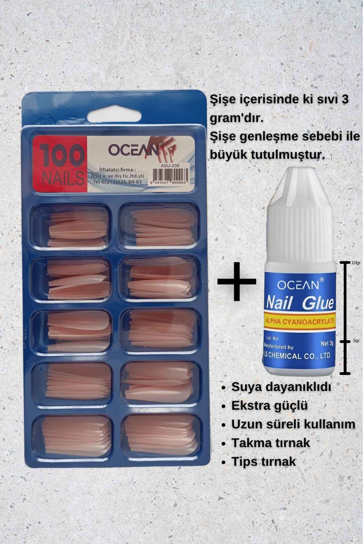 OCEAN Takma Tırnak ( Balerin 236 Pembe ) + Tırnak Yapıştırıcısı ( Nail Glue ) 3gr | Suya Dayanıklı
