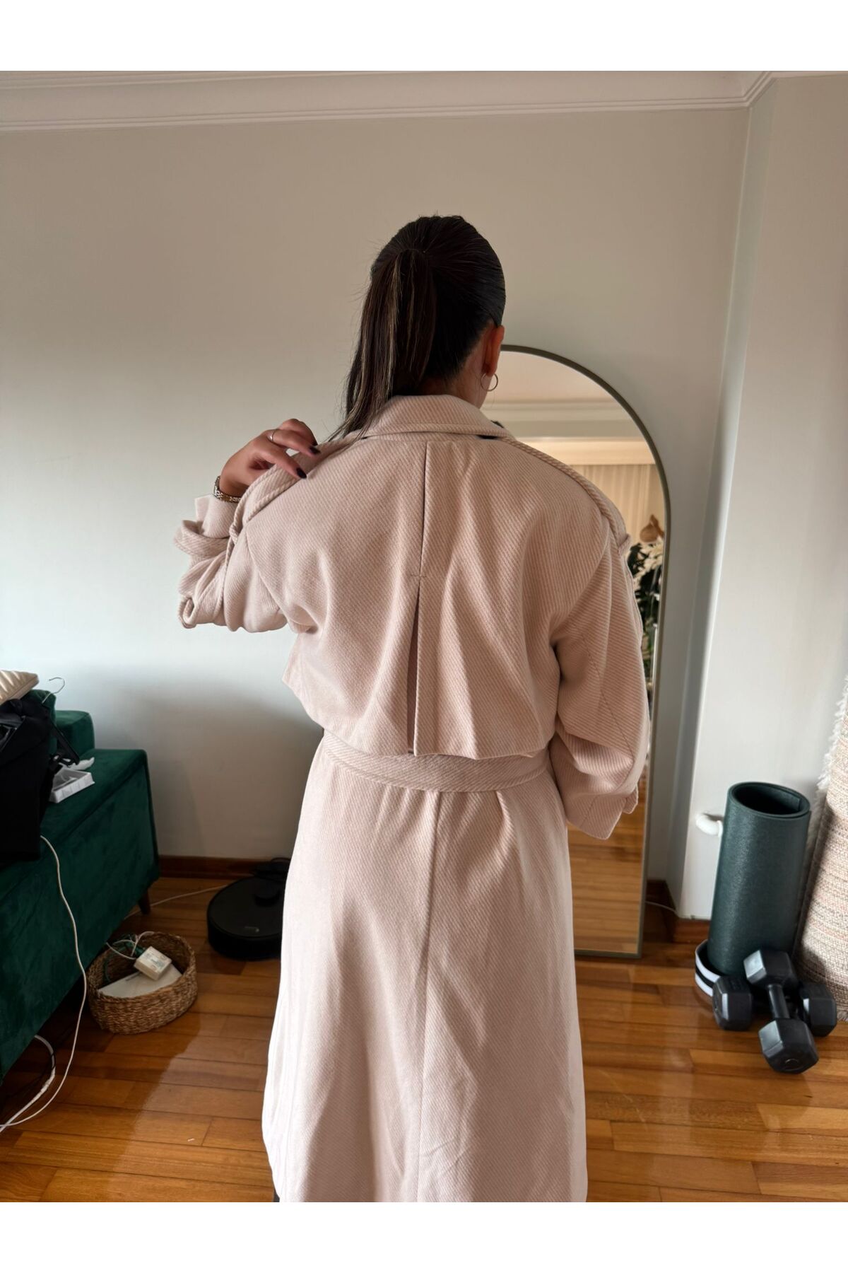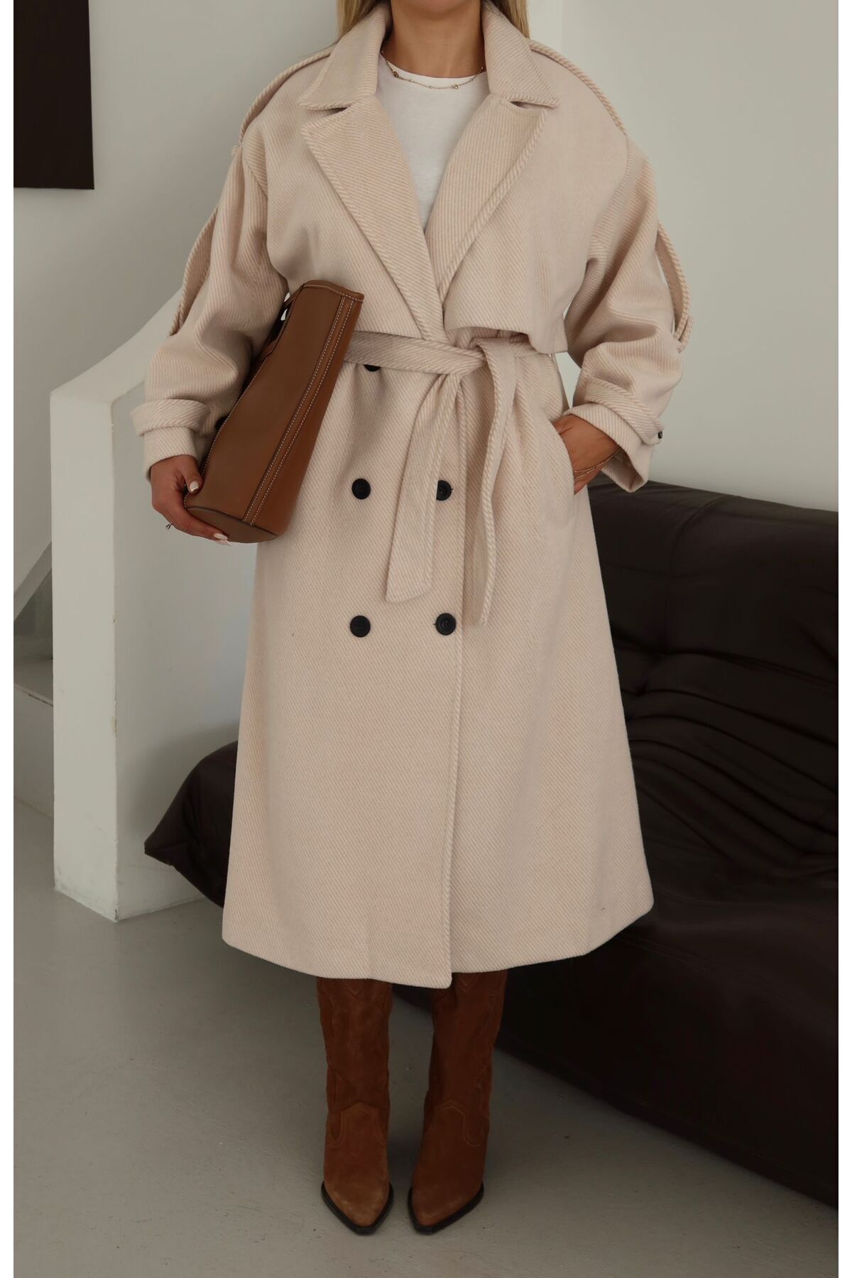 - Kruvaze yaka tipi ile modern ve zarif bir stil oluştururken, boynu soğuktan korur.