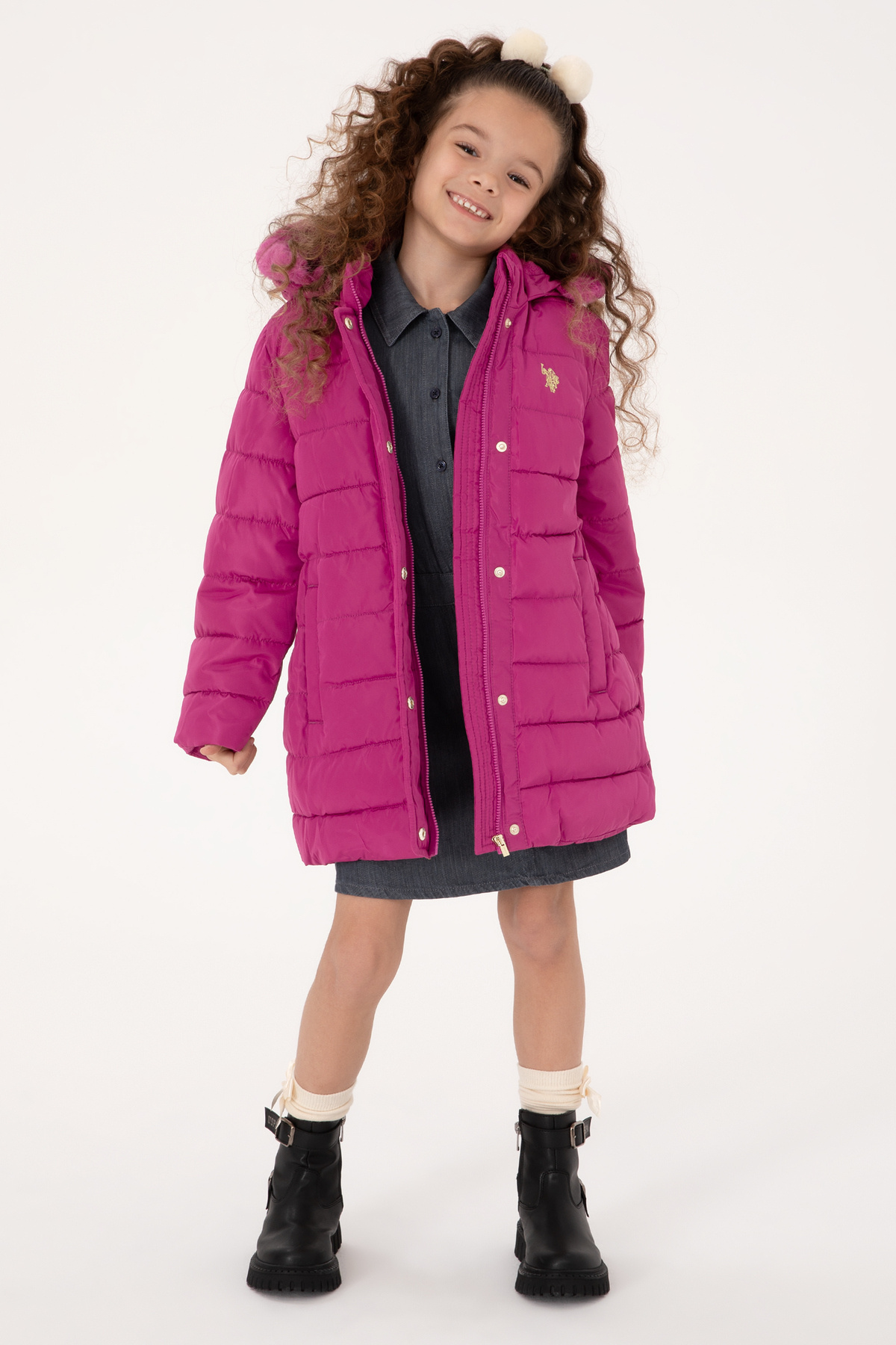 Kız Çocuk Kapüşonlu Fuşya Kaban 50313175-VR023