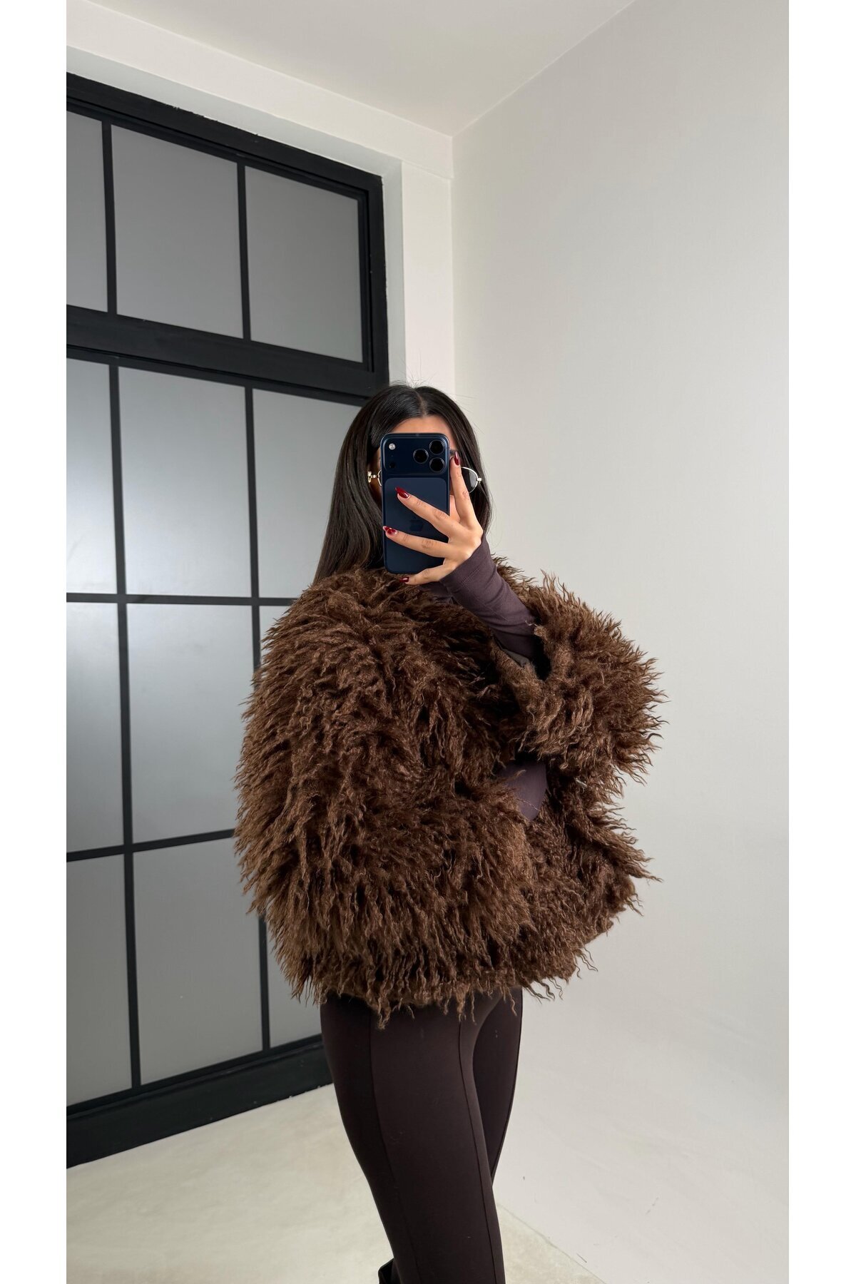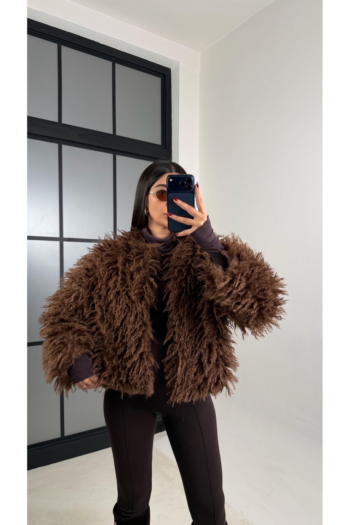 Saçaklı Uzun Tüylü Kürk Mont Ceket