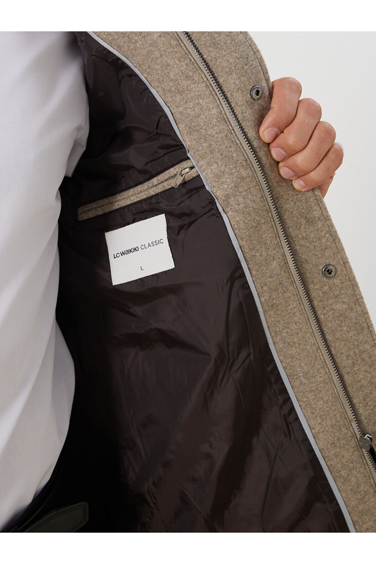 LCWAIKIKI Classic Bej Büyük Beden Standart Kalıp Dik Yaka Erkek Kaşe Kaban