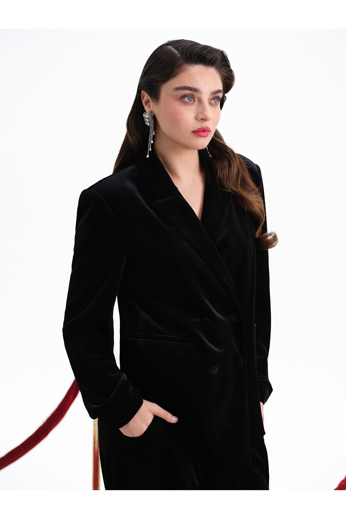 Kruvaze Yaka Kadın Kadife Blazer Ceket