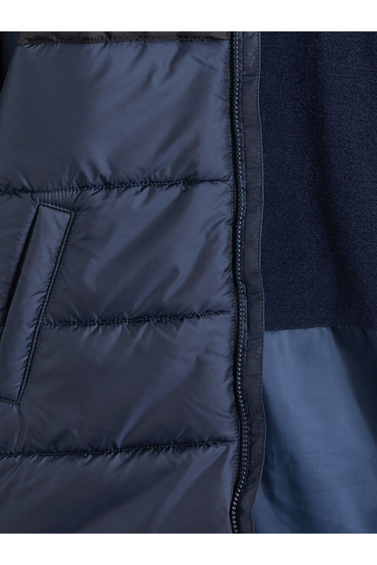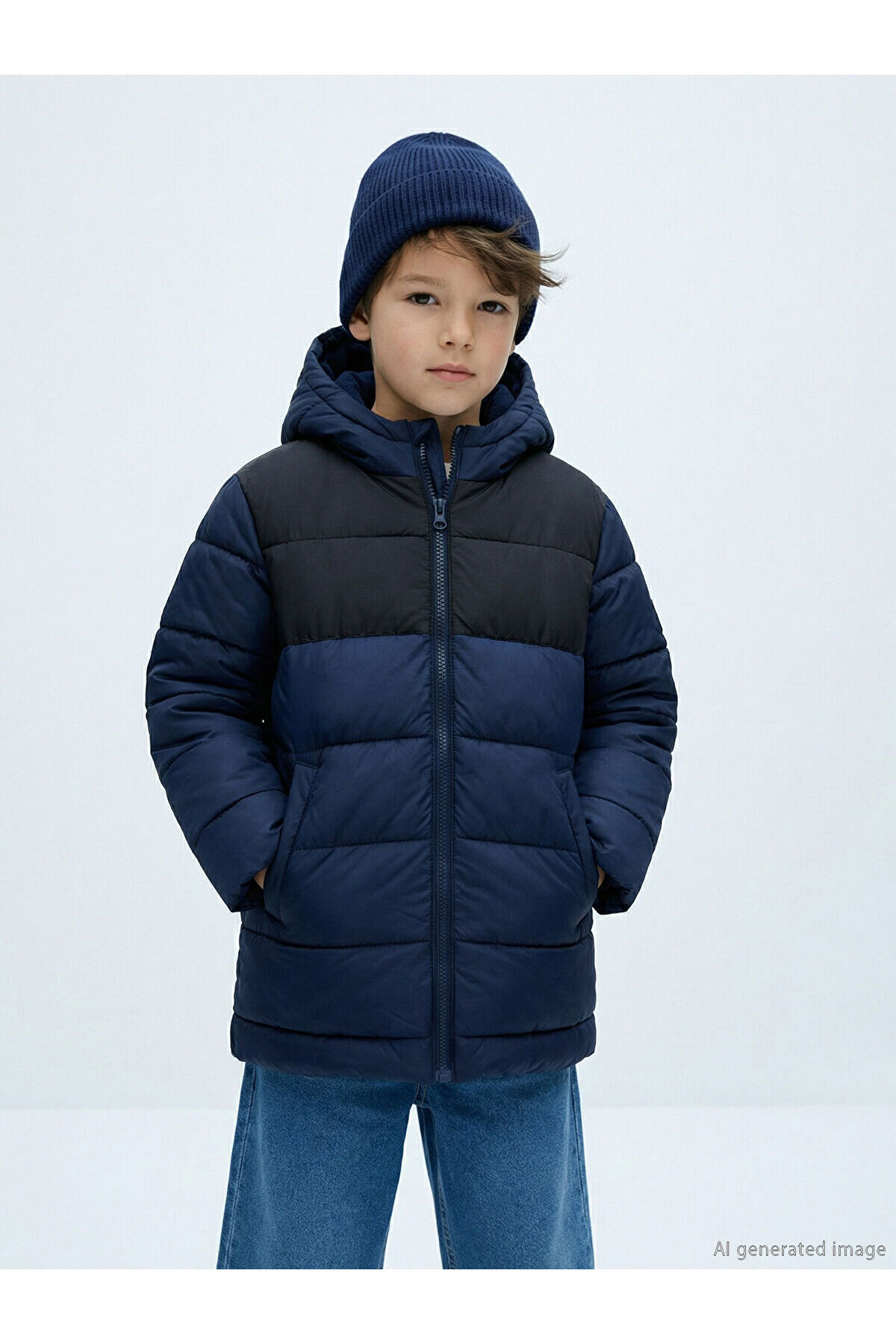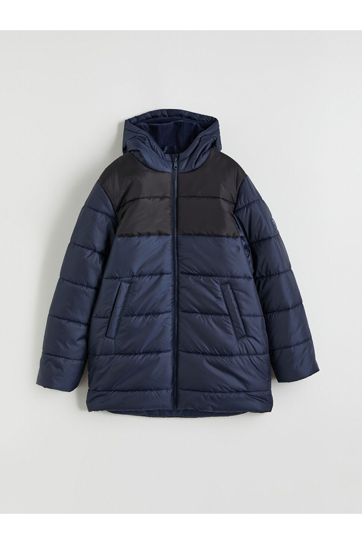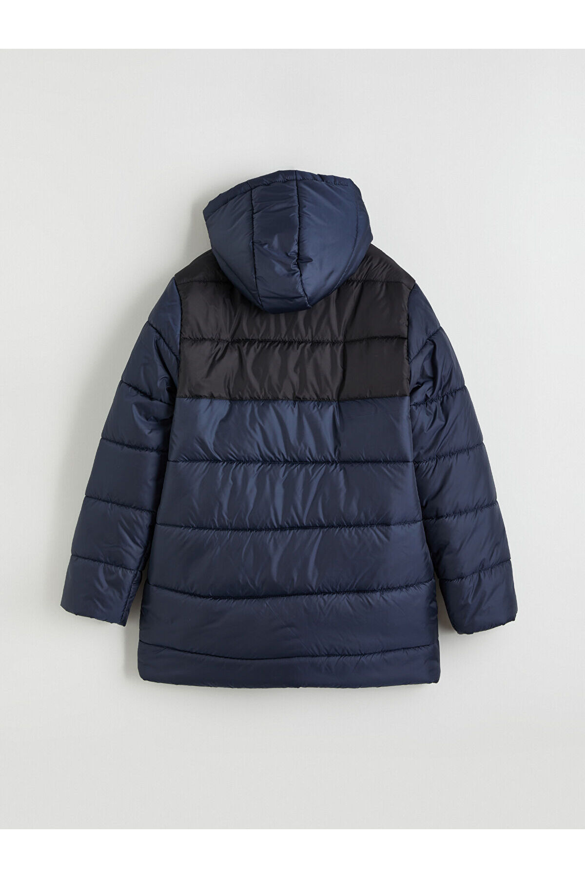 Ürün Kodu:W5N980Z4-HFK - LacivertPolar astarlı kapüşonlu, renk bloklu erkek çocuk şişme mont, uzun kolludur.