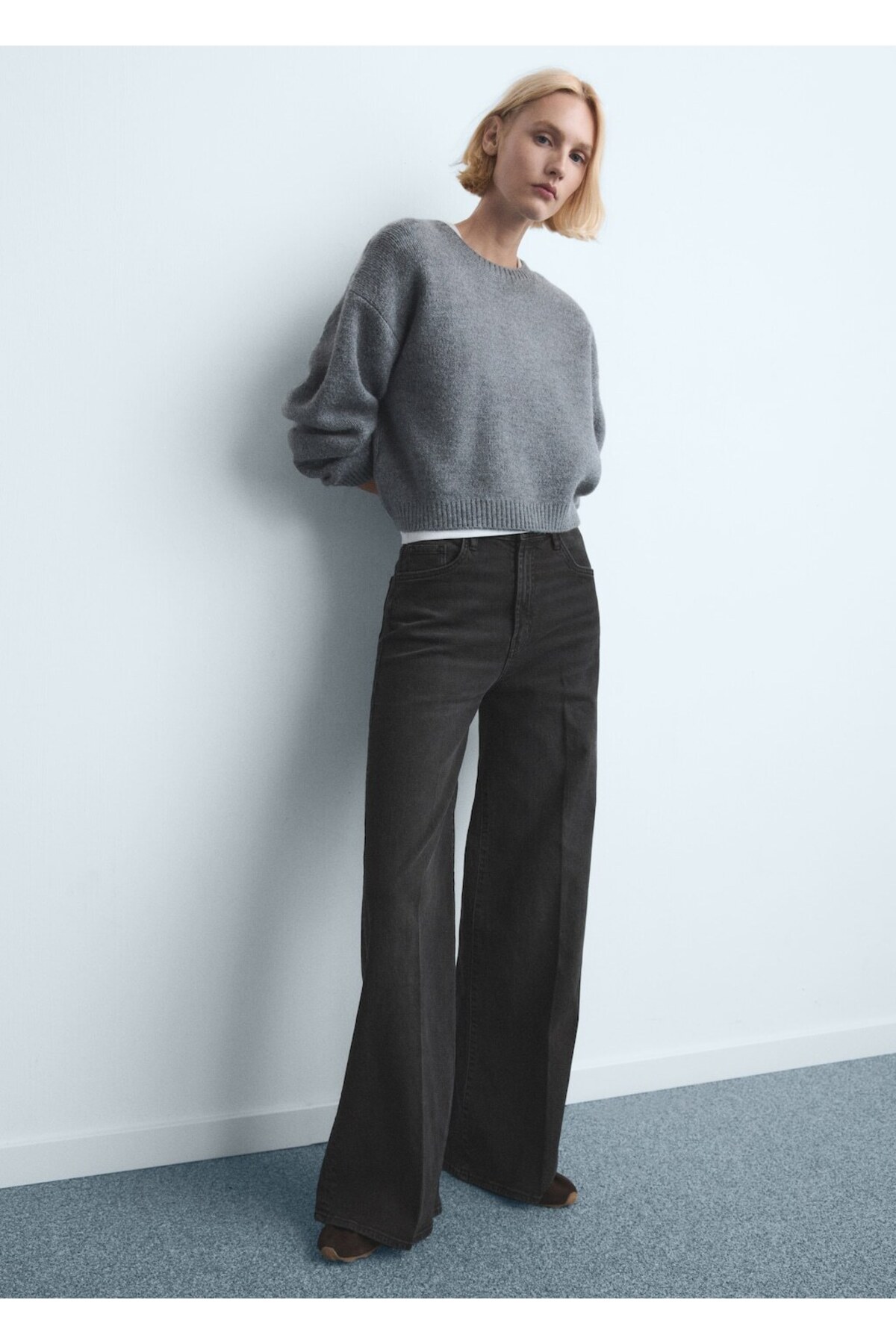 Yüksek bel wide leg jean pantolon