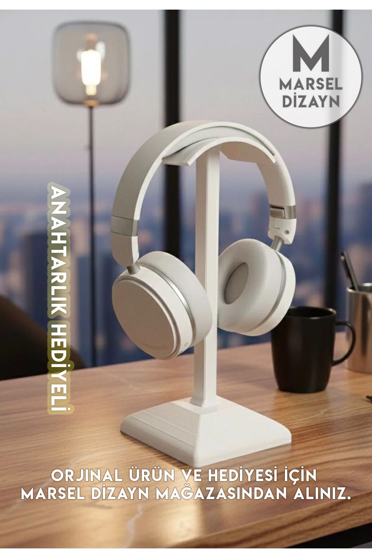 Dekoratif Gamer Kulaklık Standı - Kulaklık Tutucu - BEYAZ - 24 CM - Anahtarlık Hediyeli