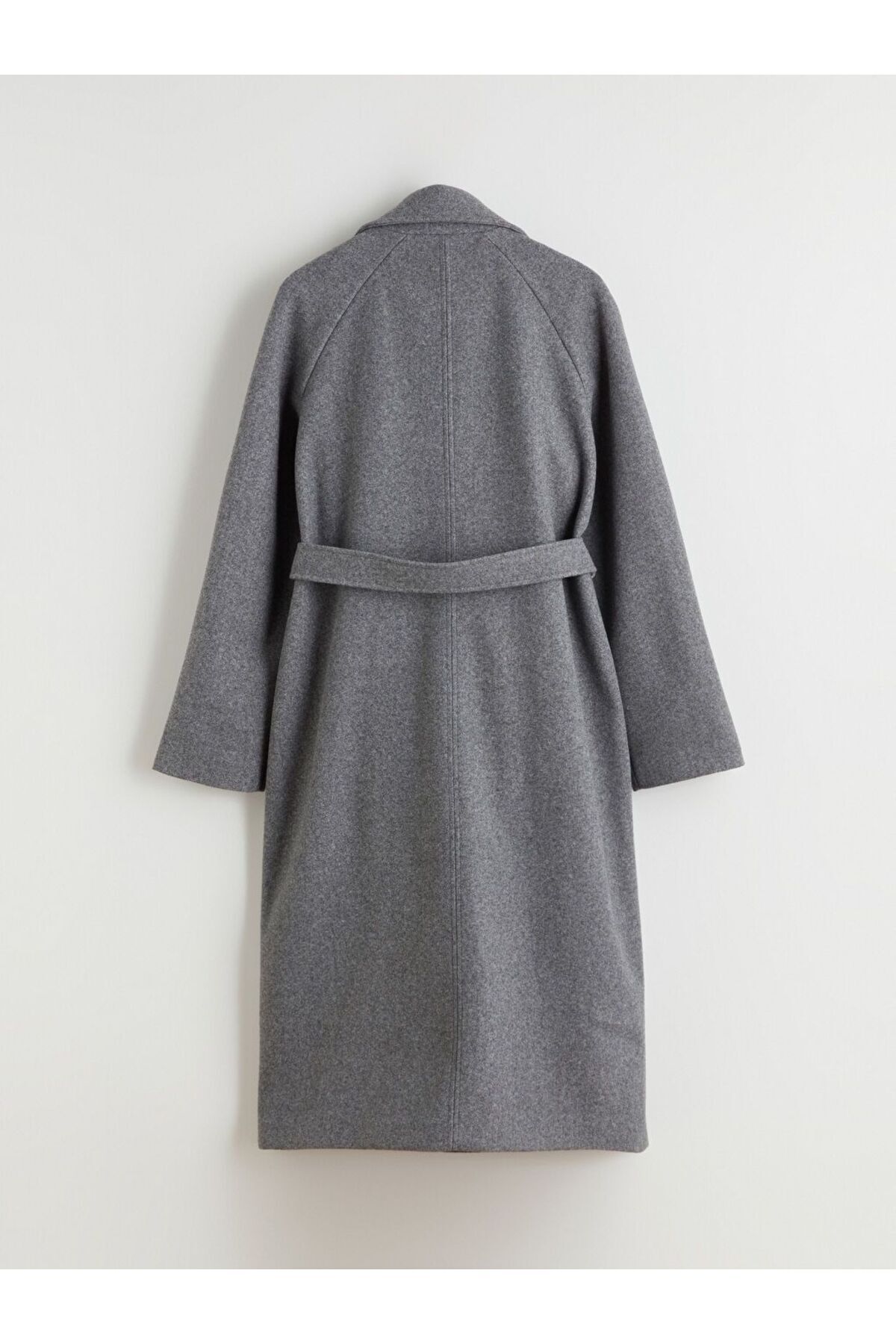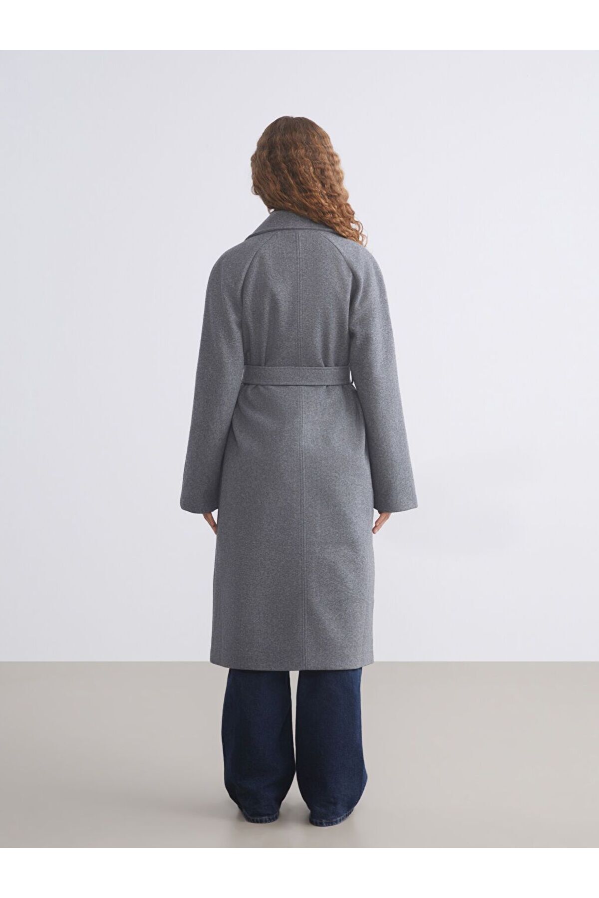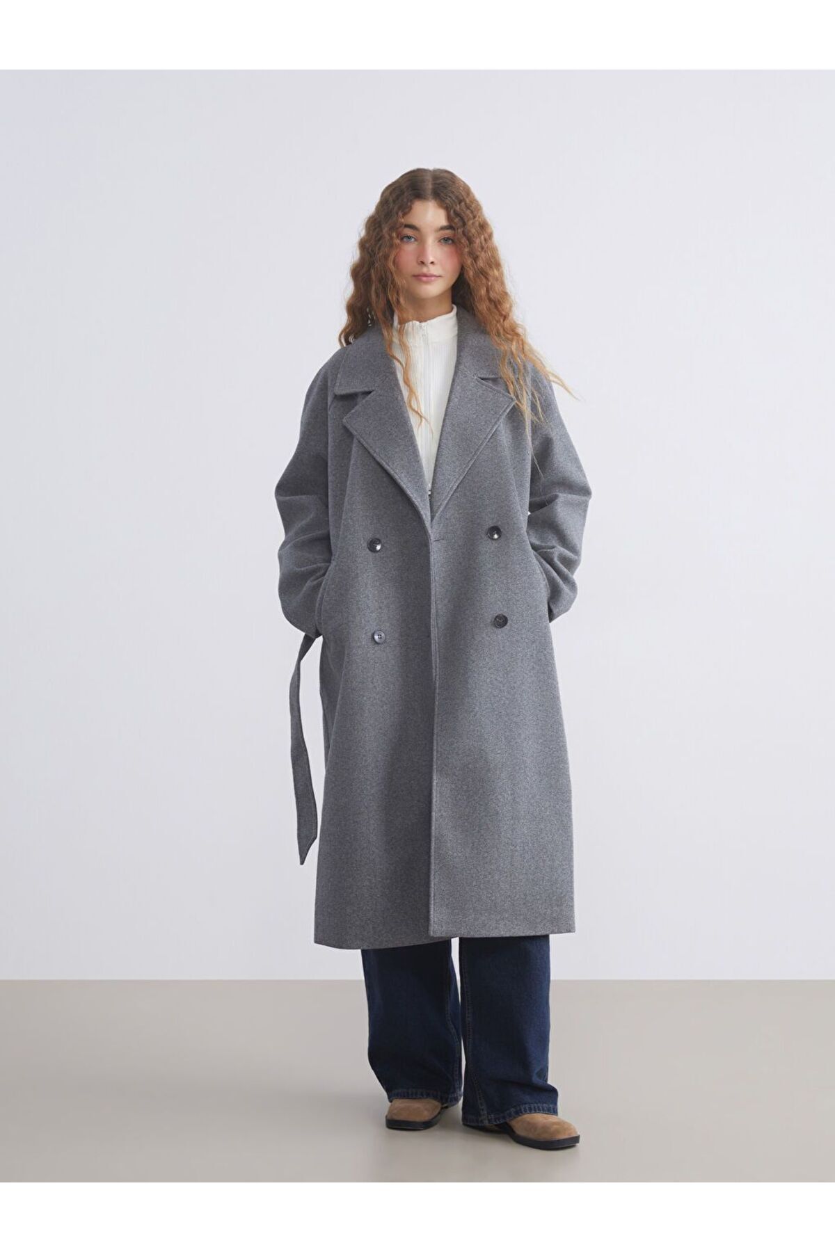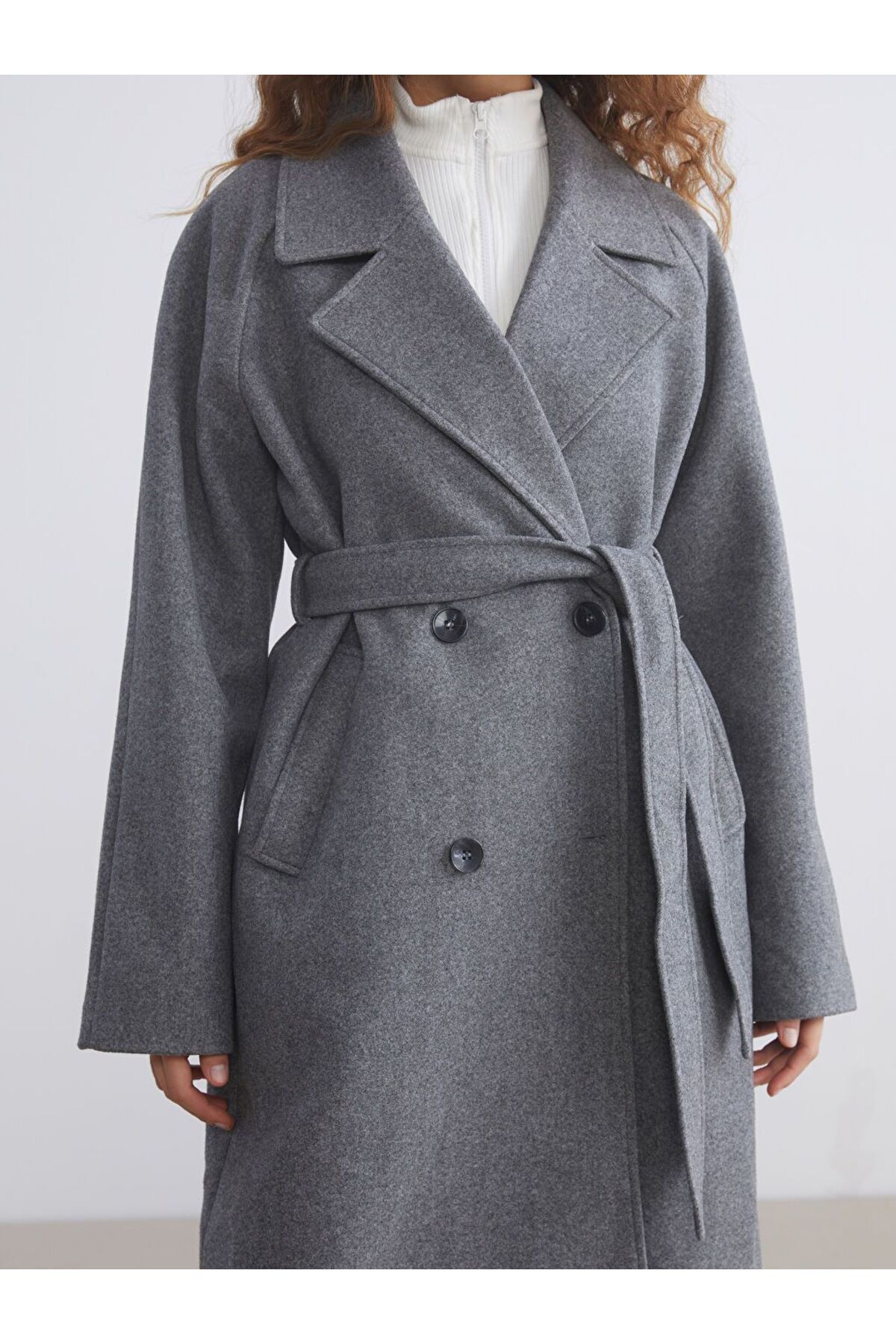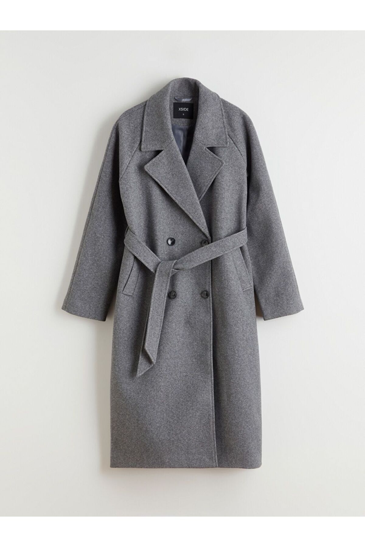 XSIDE Beli Kemerli Kruvaze Yaka Kadın Kaşe Kaban