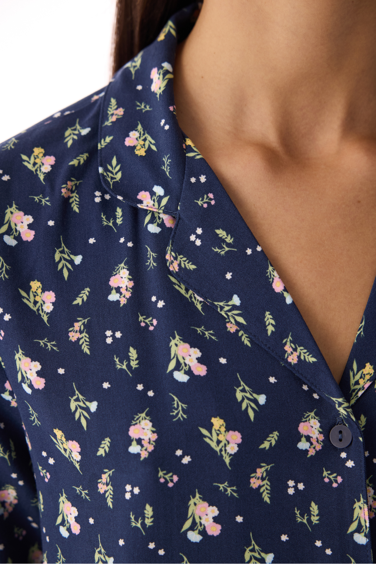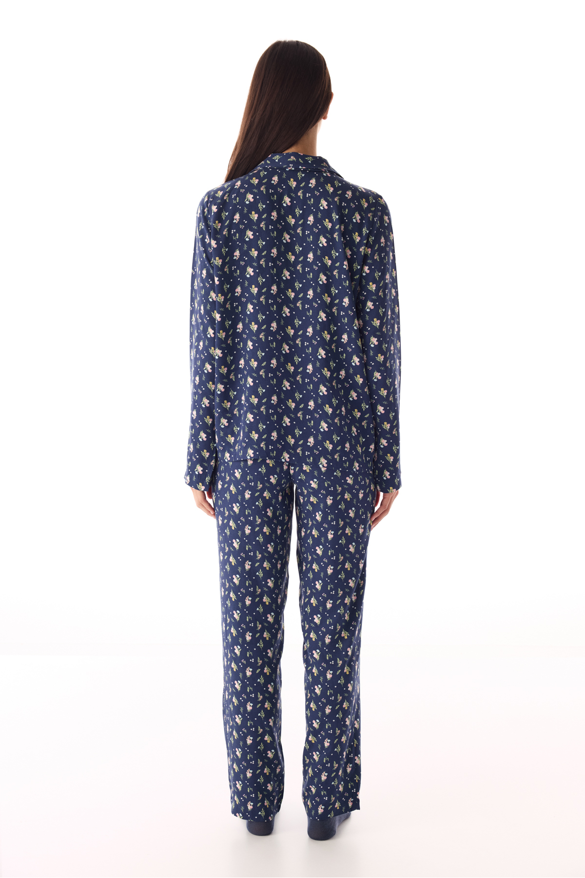 Koyu Mavi Pretty Flowers Gömlek Pantolon Pijama Takımı