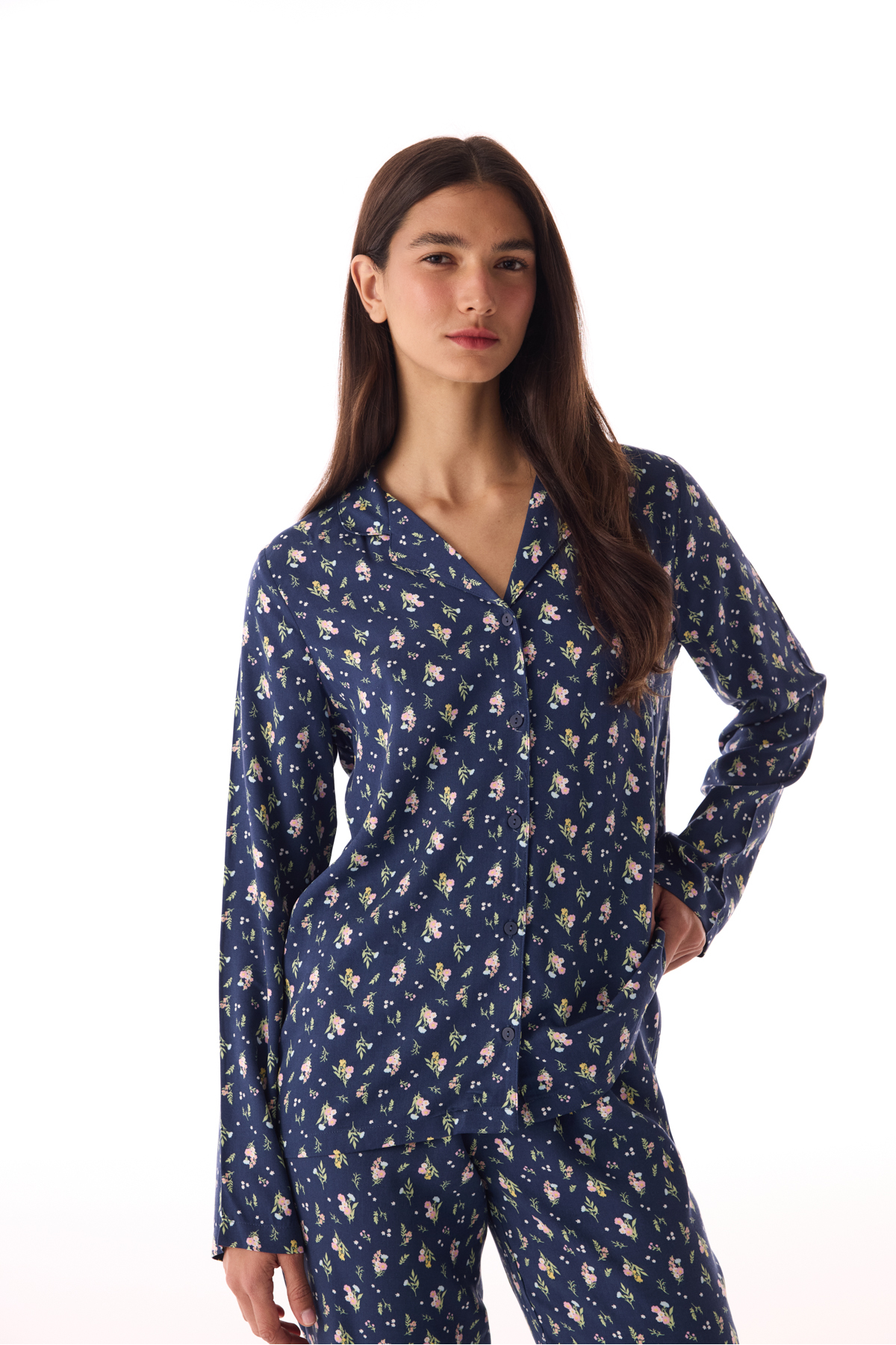 Pretty Flowers Ls Gömlek Pantolon Set, takım olarak hazırlanan konforlu bir pijama seçeneğidir.