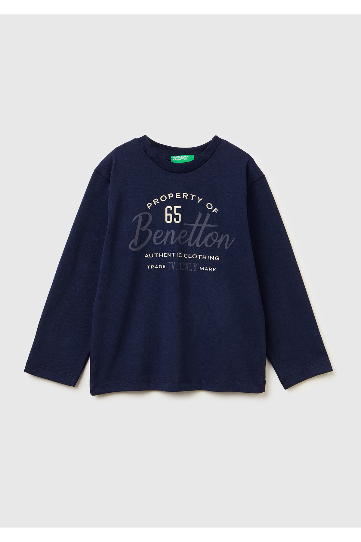 Erkek Çocuk Lacivert Önü Logo Baskılı Uzun Kollu T-shirt