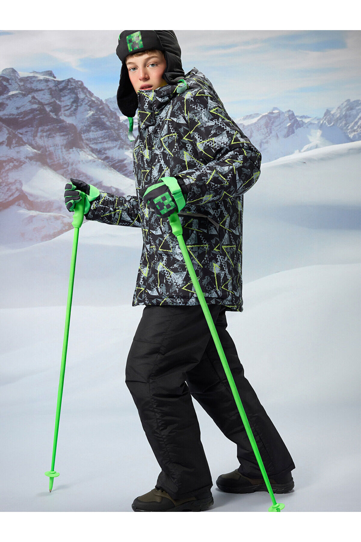 Siyah Beli Lastikli Erkek Çocuk Kayak Pantolonu