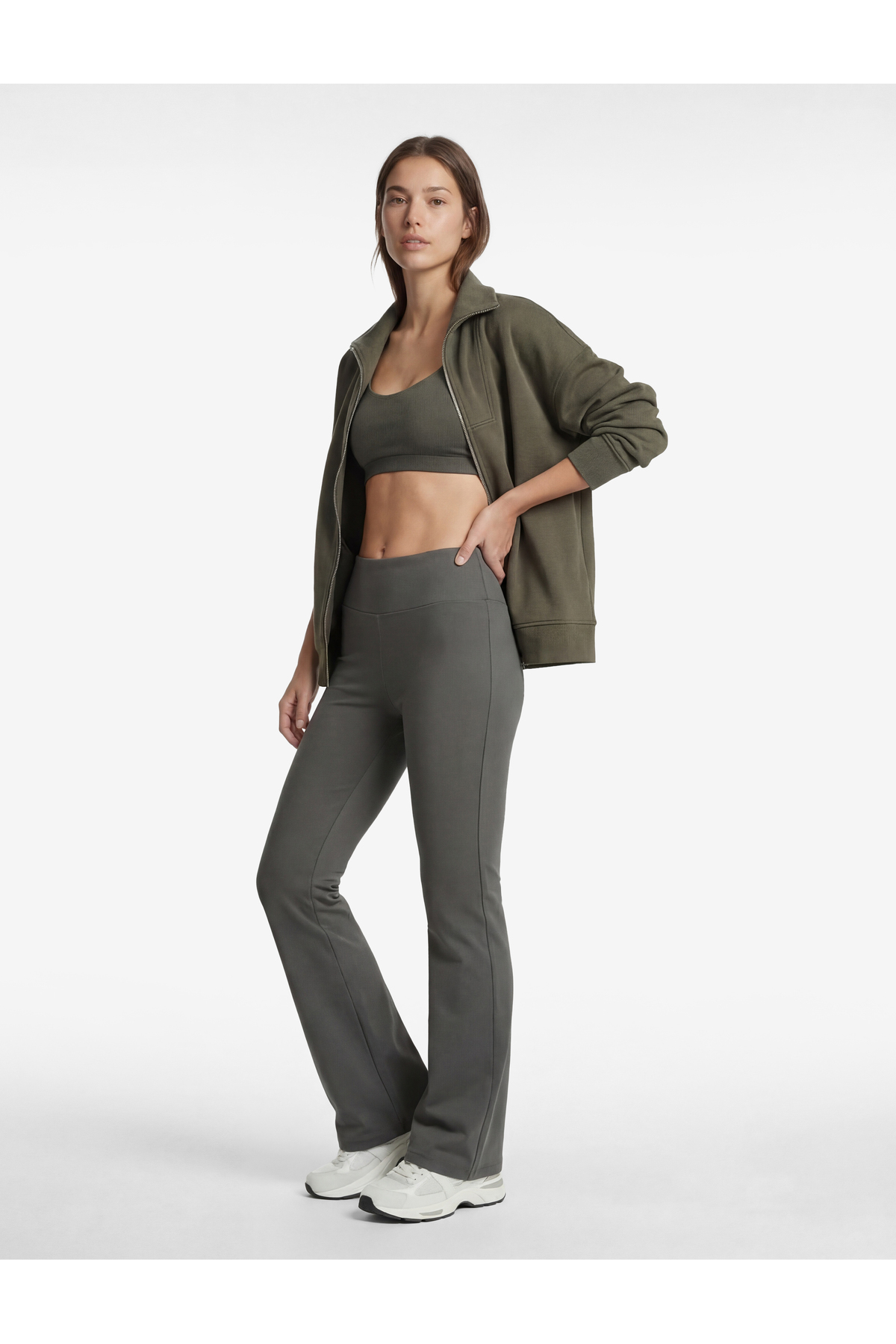 Yüksek Bel Slim Fit İspanyol Paça Spor Tayt