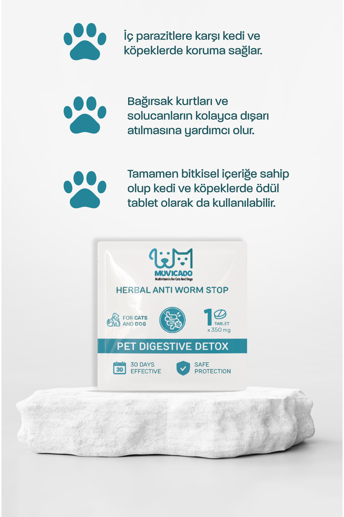 Kedi Köpek İçin Lezzetli Bitkisel İç Anti Parazit Herbal Tableti Kedi ve Köpek Parazit Hapı 10 Adet