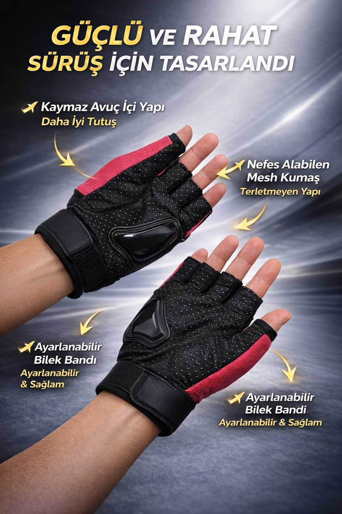 - Kesik parmak tasarımı sayesinde maksimum hareket özgürlüğü sağlar ve sürüş sırasında ellerinizin rahat etmesini sağlar.