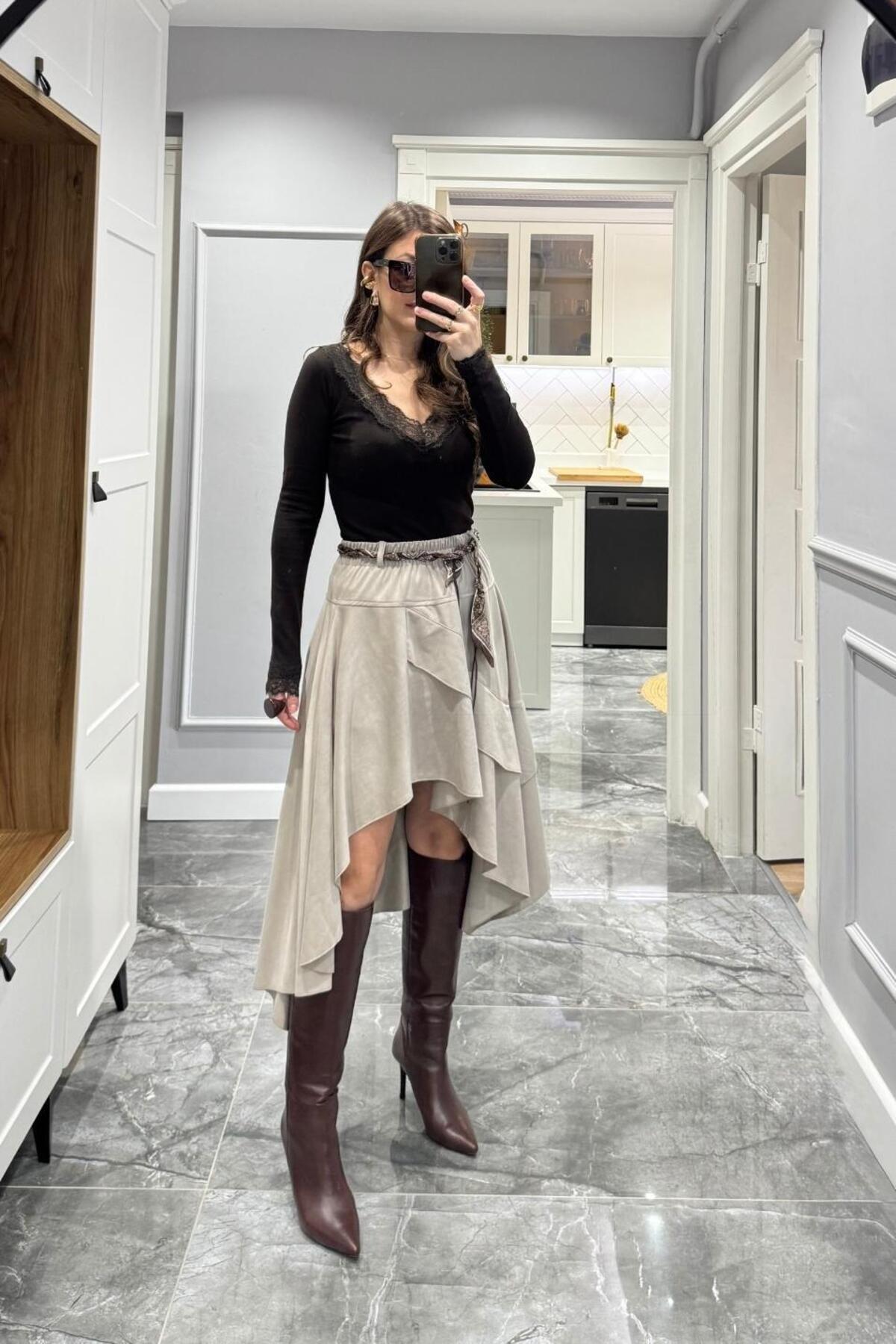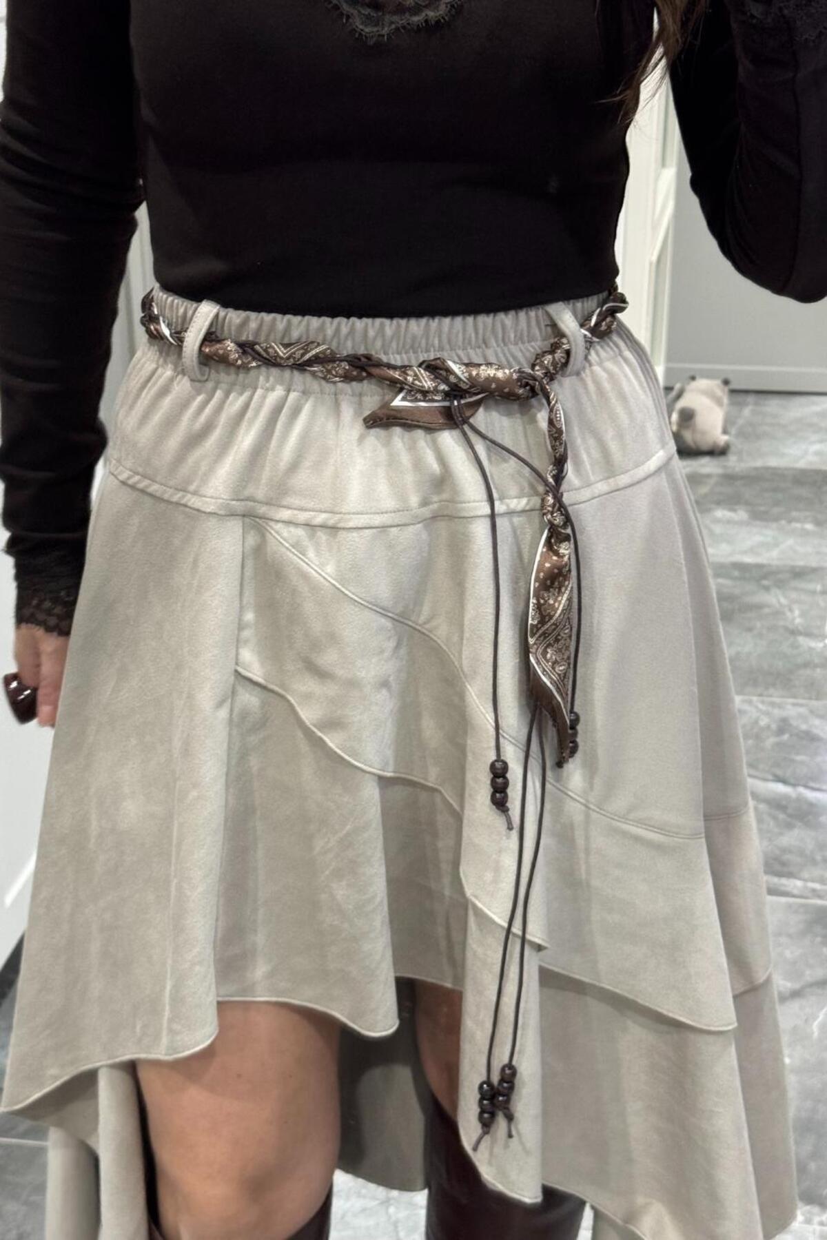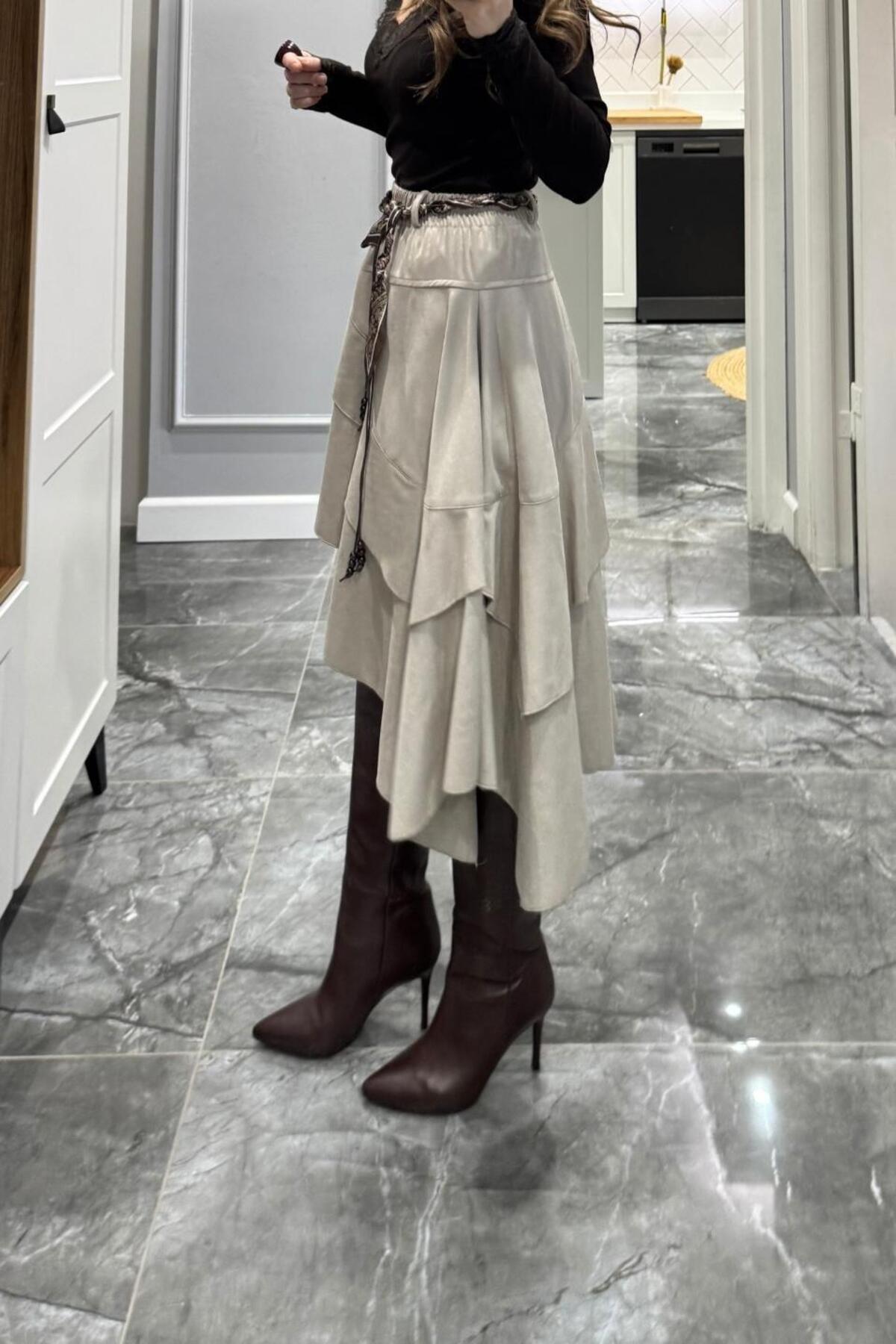 Şort Astarlı Asimetrik Nubuk Etek Taş