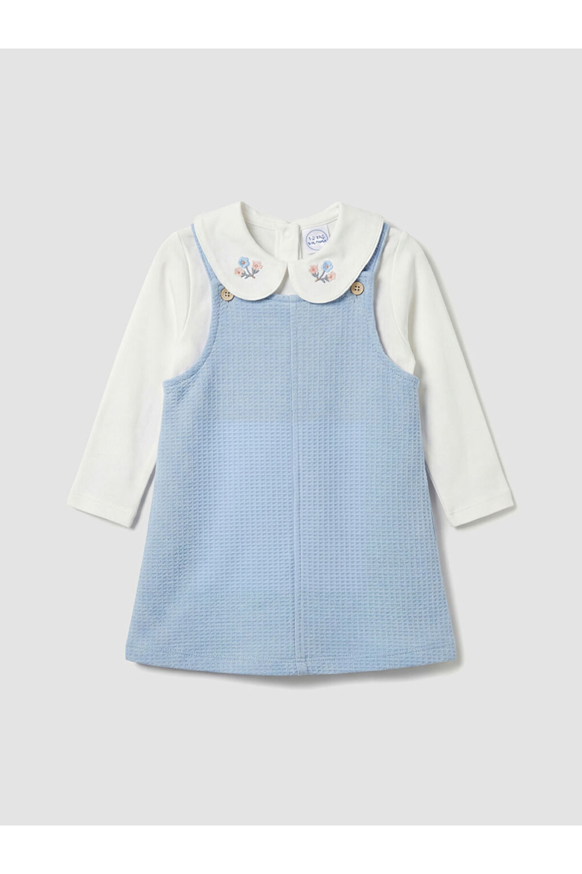 LCW baby Mavi Nakışlı Kız Bebek Salopet Elbise Ve Bluz