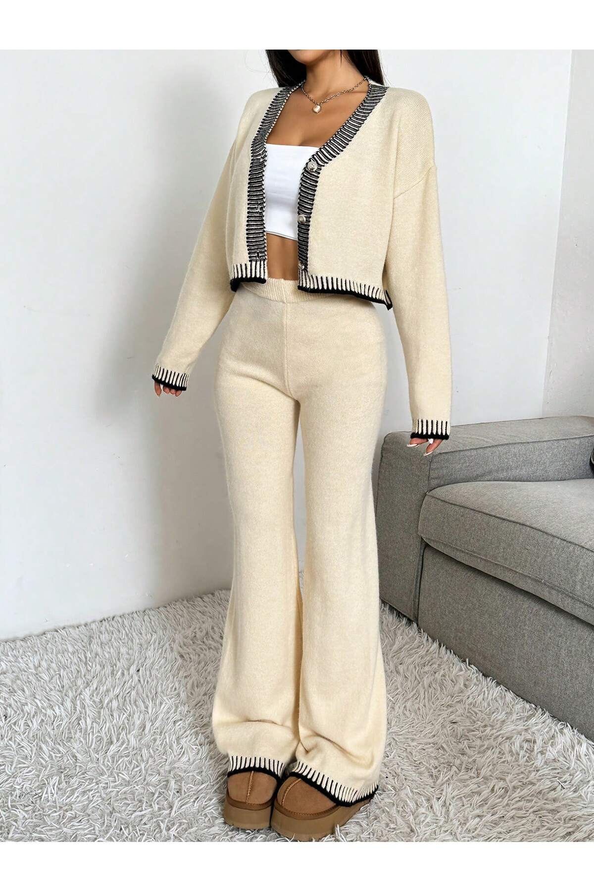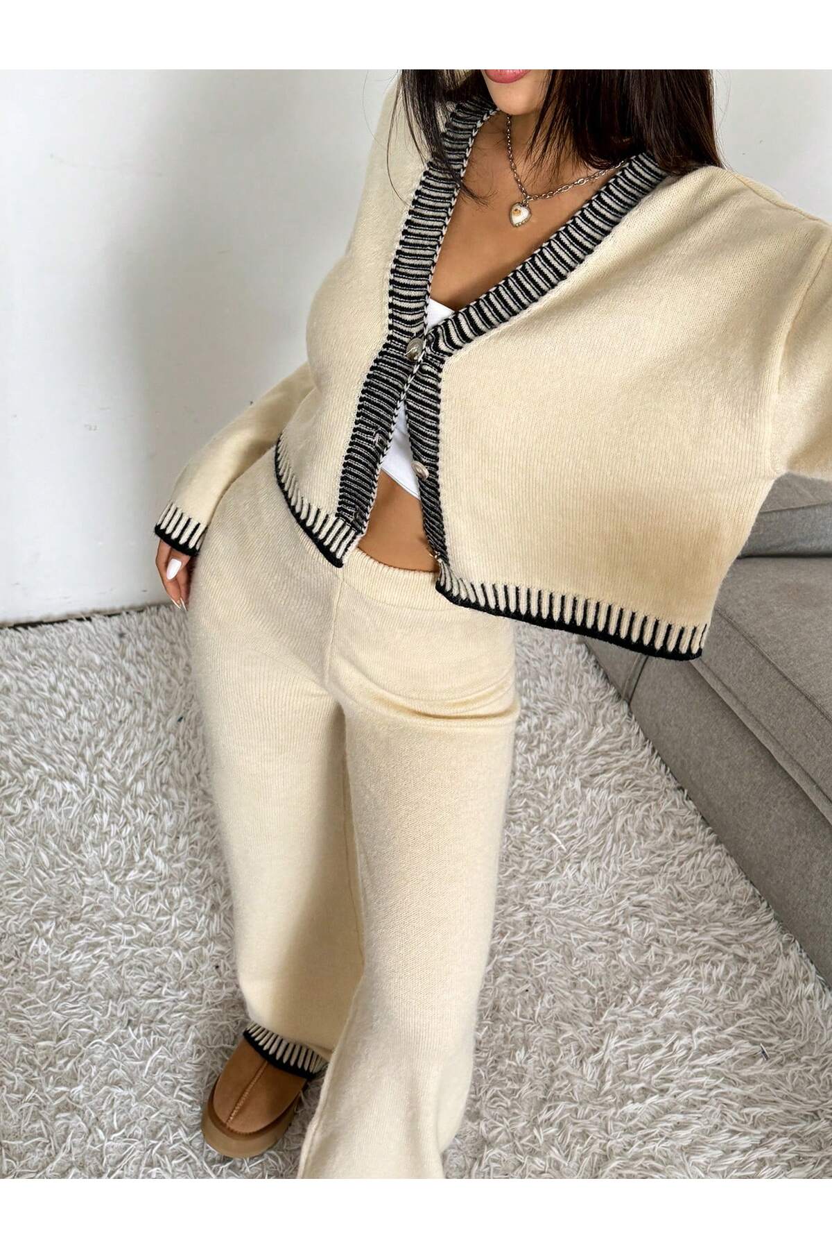 - Modern ve şık tasarımıyla dikkat çeken düz desenli triko takım, günlük kullanım için idealdir.