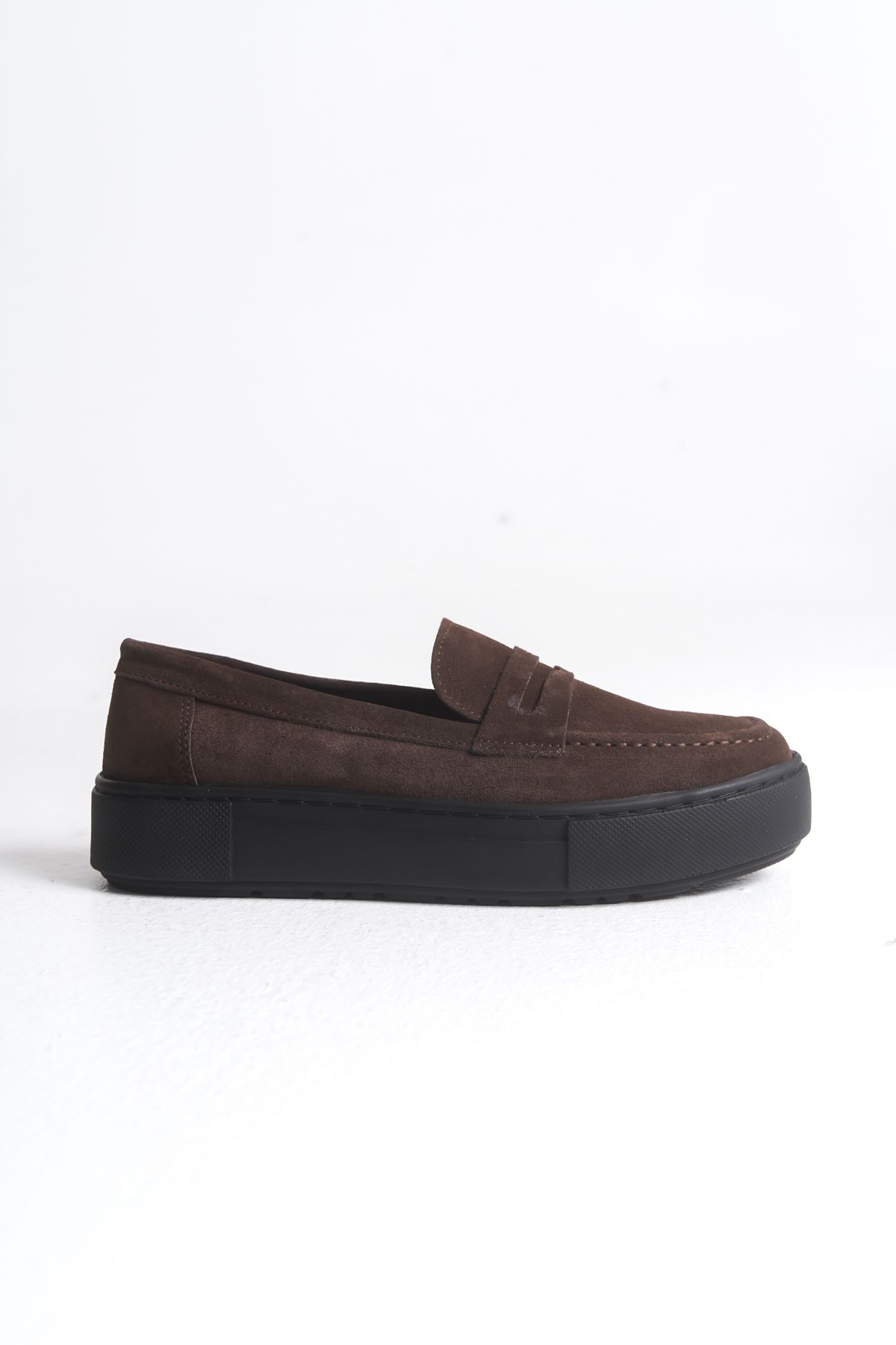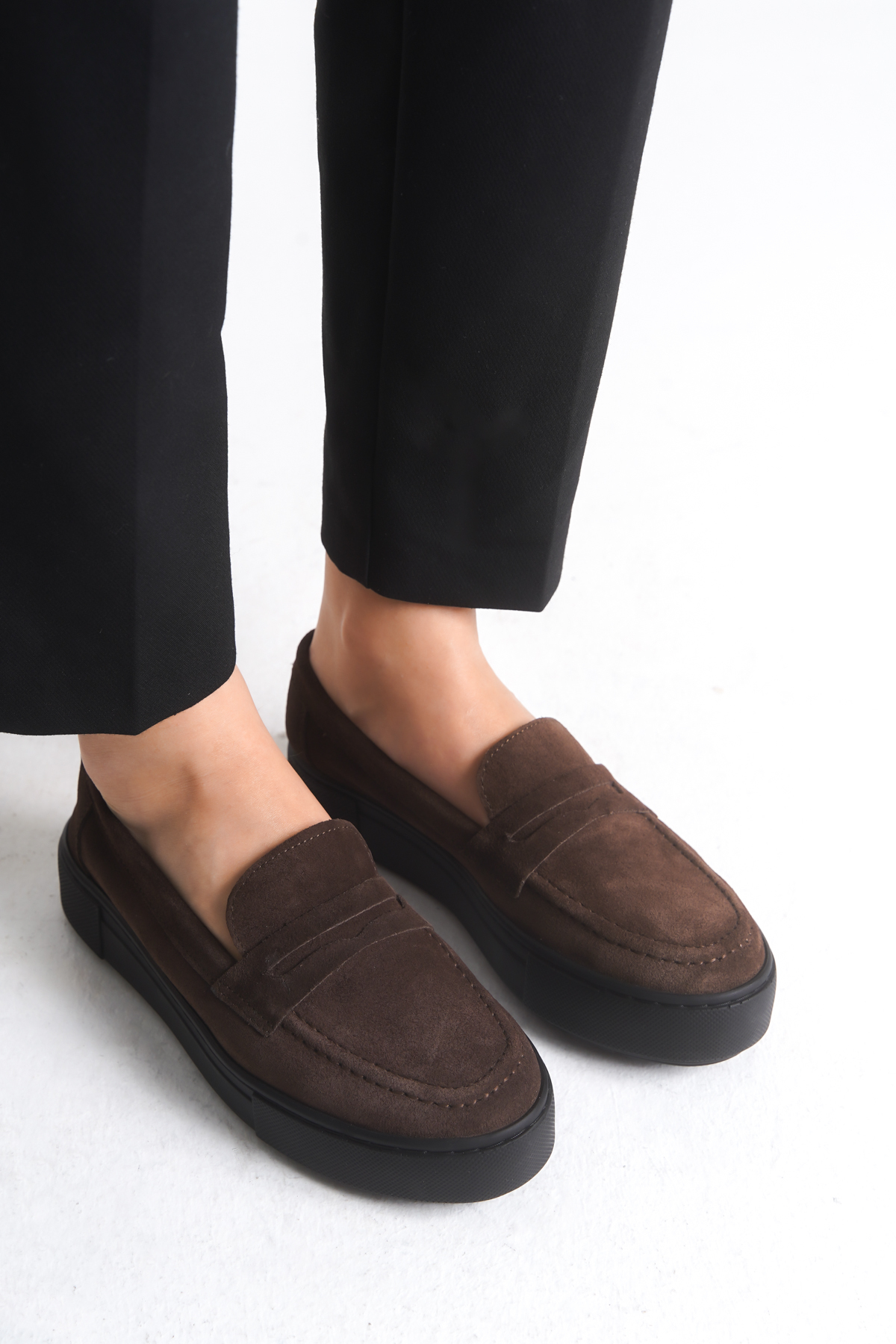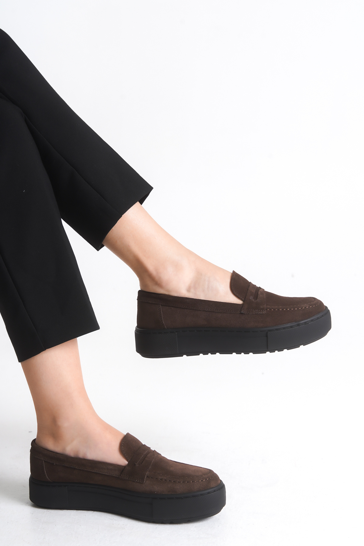 Kadın Kahverengi Hakiki Süet Deri Düz Casual Loafer Günlük Şık Ayakkabı