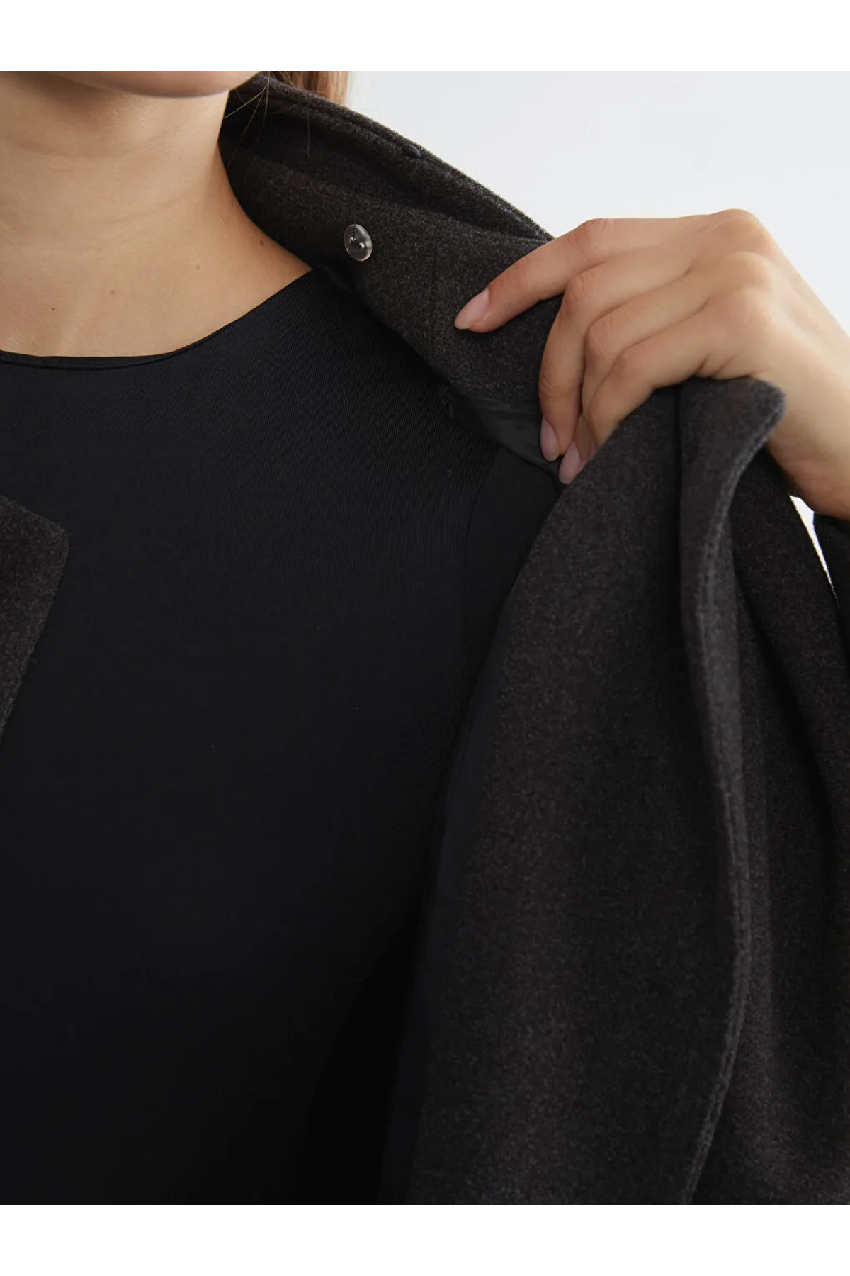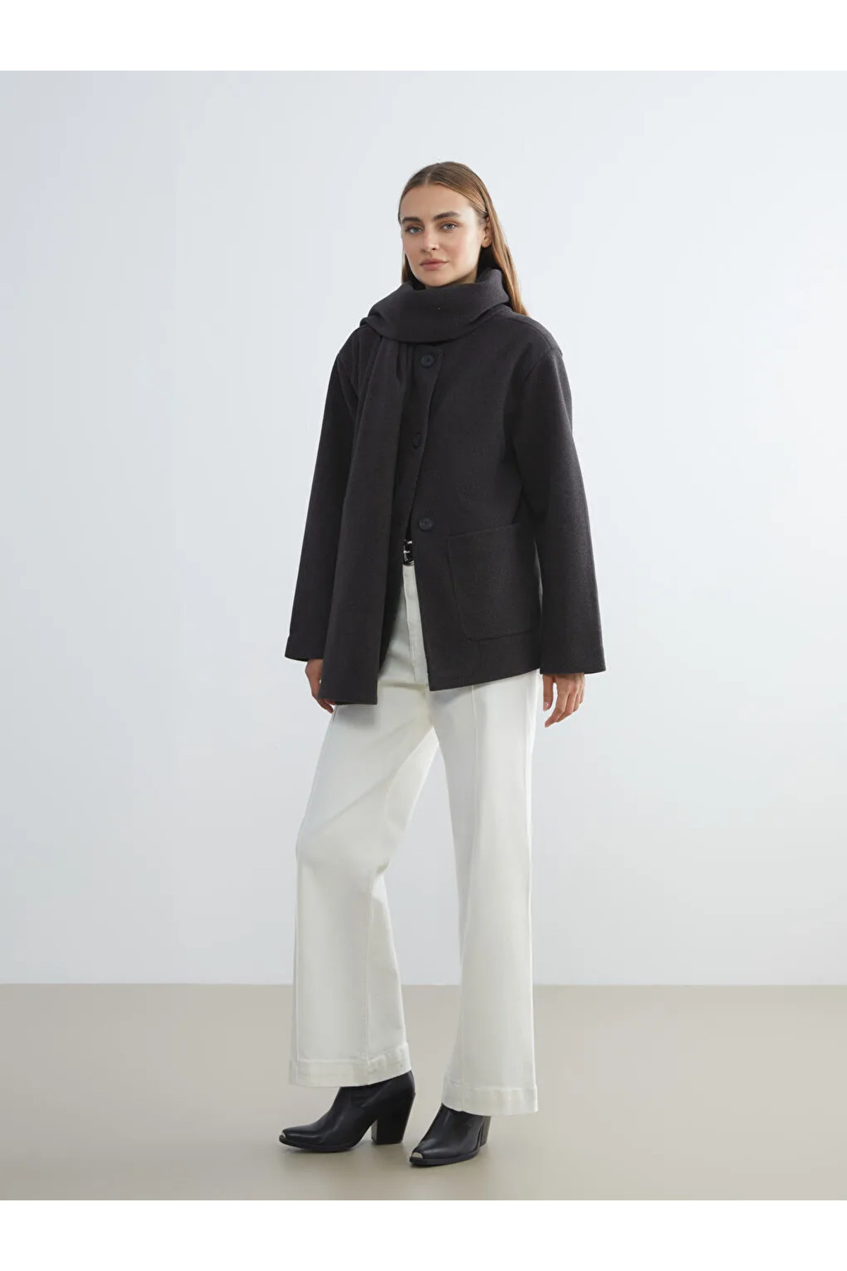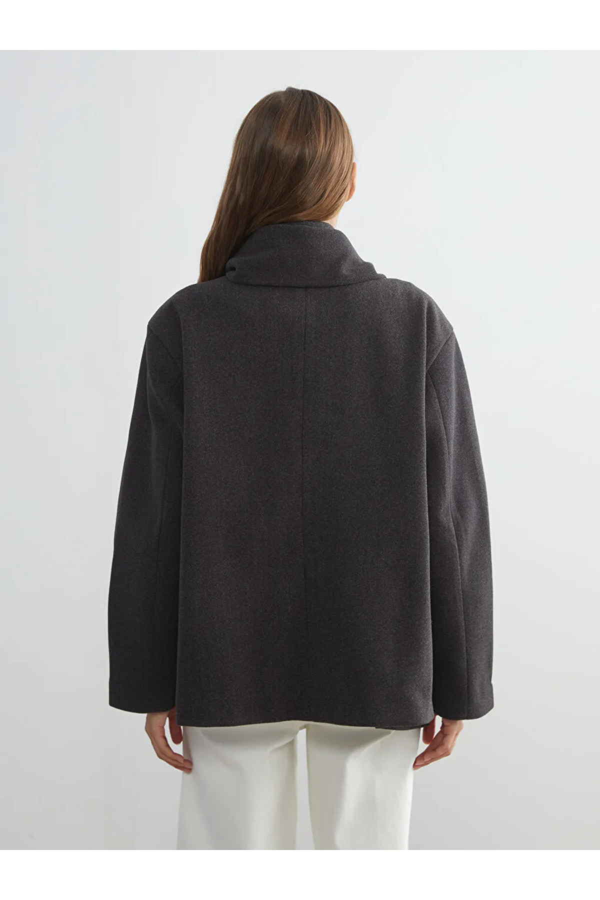 Ürün Açıklaması Ürün Kodu: W5DF84Z8-L8N - Antrasit Atkı yakalı kadın kaşe kaban, uzun kolludur.