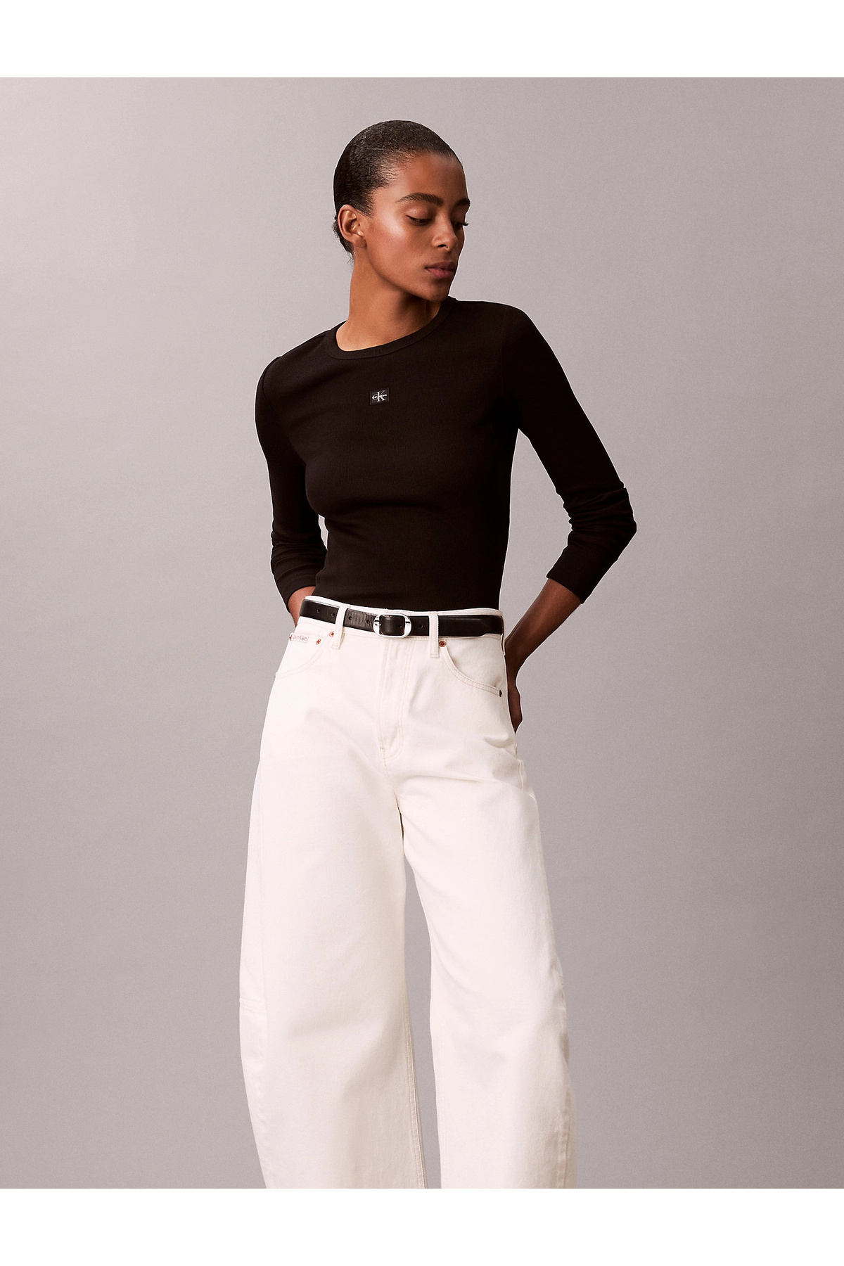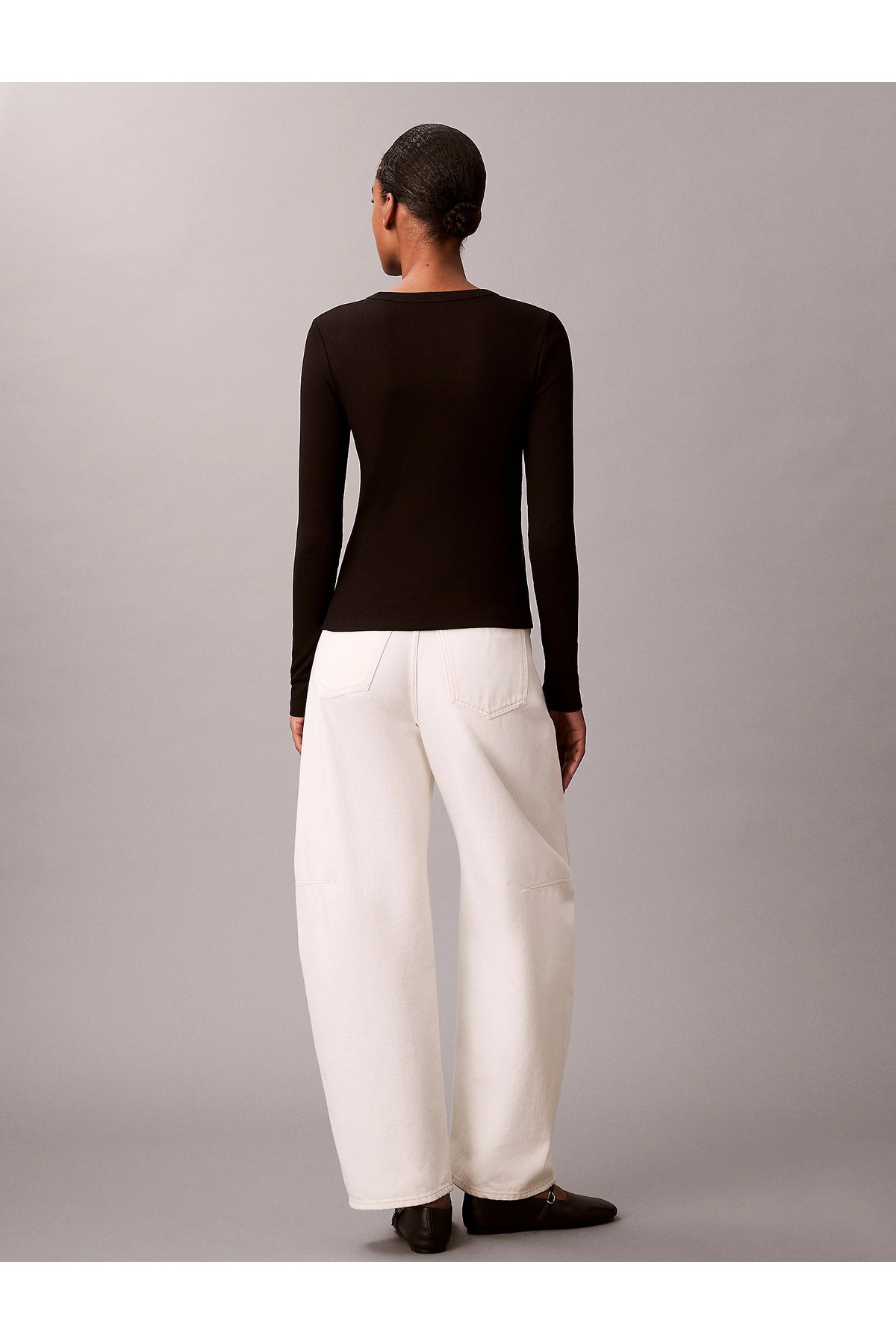 Uzun Kollu Dokuma Etiketli 2x2 Fitilli Bisiklet Yaka Kadın Siyah Bluz LV047E205G-UB1
