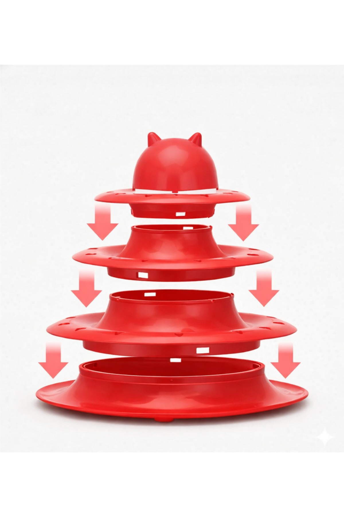 3 Katlı Hareketli Toplu Kedi Oyuncağı Kırmızı – Sıkılmayı Önleyen, Evde Enerji Atıcı Oyuncak