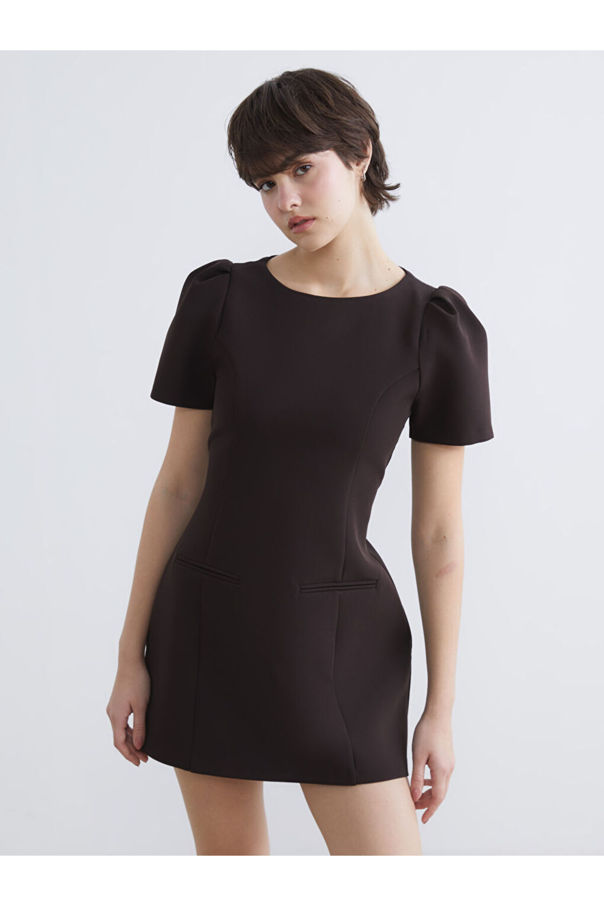 Ürün Kodu: S6KL83Z8-1J0 - Kahverengi | Ürün İçeriği ve Özellikleri | Ana Kumaş: %12 Elastan, %88 Poliester | Satıcı: LC Waikiki | Marka: XSIDE | Ürün Tipi: Elbise | Cinsiyet: Kadın | Kalıp: Dar & Slim | Kumaş: Poliviskon | Astar Detay: Astarlı | Uzunluk: Mini | Yaka: Bisiklet Yaka | Kol Boyu: Kısa Kollu | Desen: Düz | Kol Tipi: Balon Kol | Ek Özellik: Fermuarlı | Bakım Bilgileri: | ASARAK KURUTUNUZ | KURU TEMİZLEME YAPILAMAZ | DÜŞÜK SICAKLIKTA ÜTÜLEYİNİZ | TAMBURLU KURUTMA YAPMAYINIZ | AĞARTICI KULLANMAYINIZ | MAKSİMUM 30 °C SICAKLIKTA YIKAYINIZ