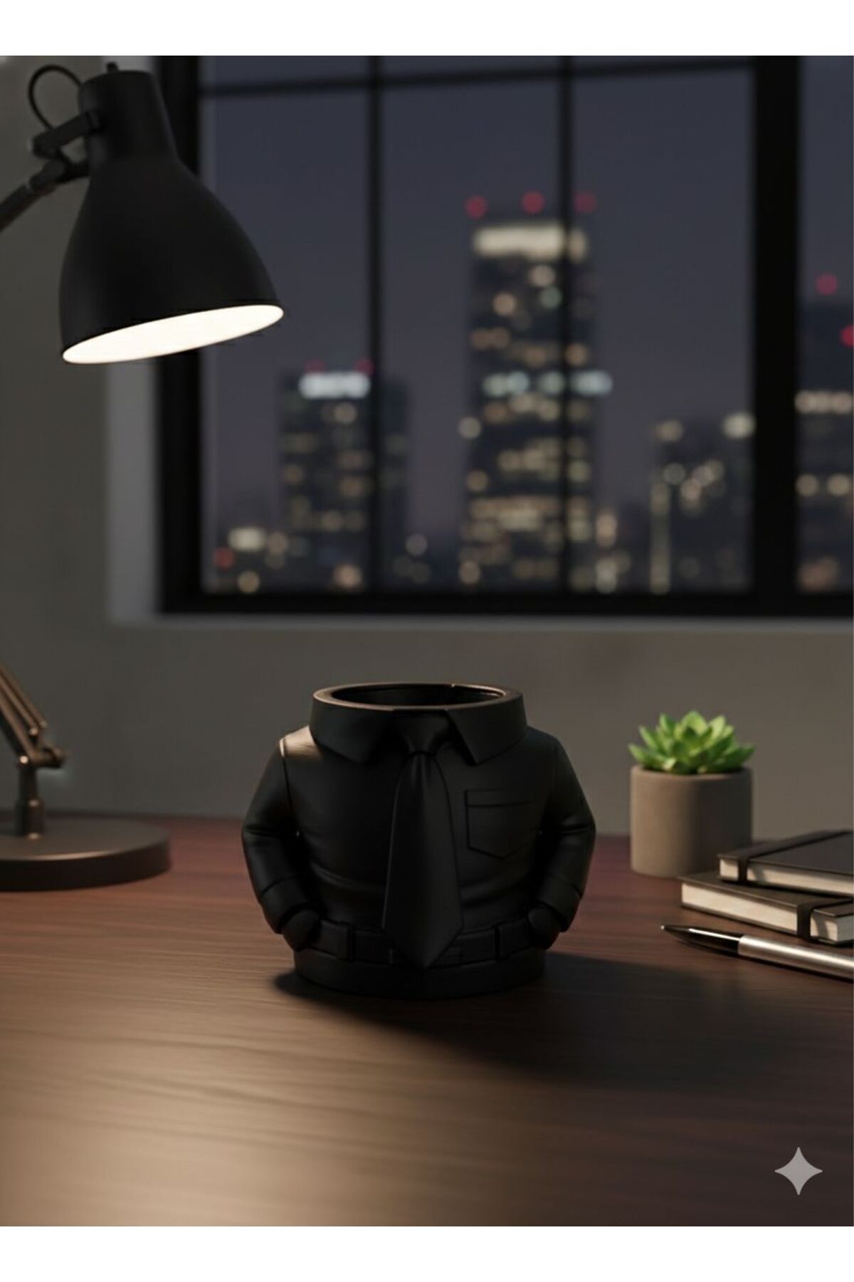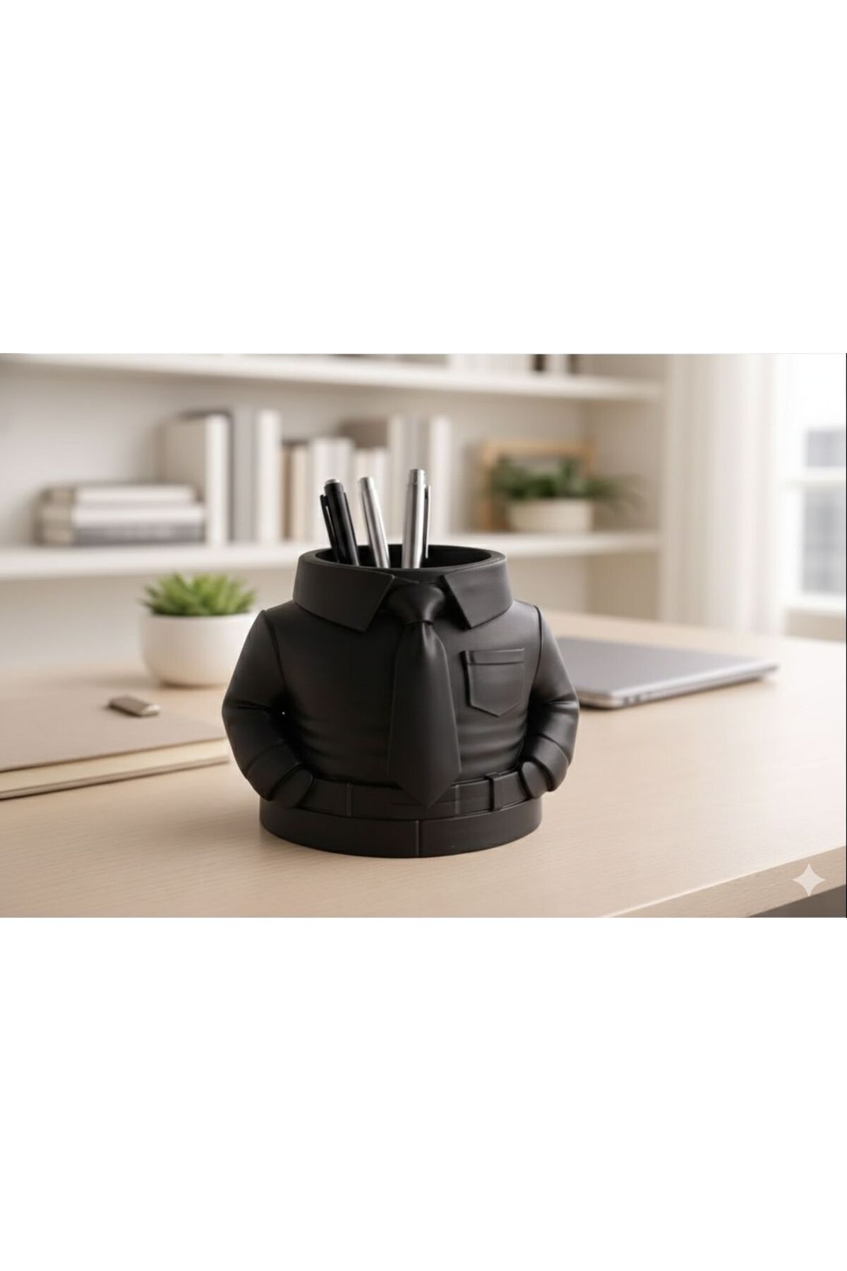 Gömlek Kravat Tasarımlı Masaüstü Kalemlik - Dekoratif Ofis Organizeri ve Yönetici Hediyesi Siyah