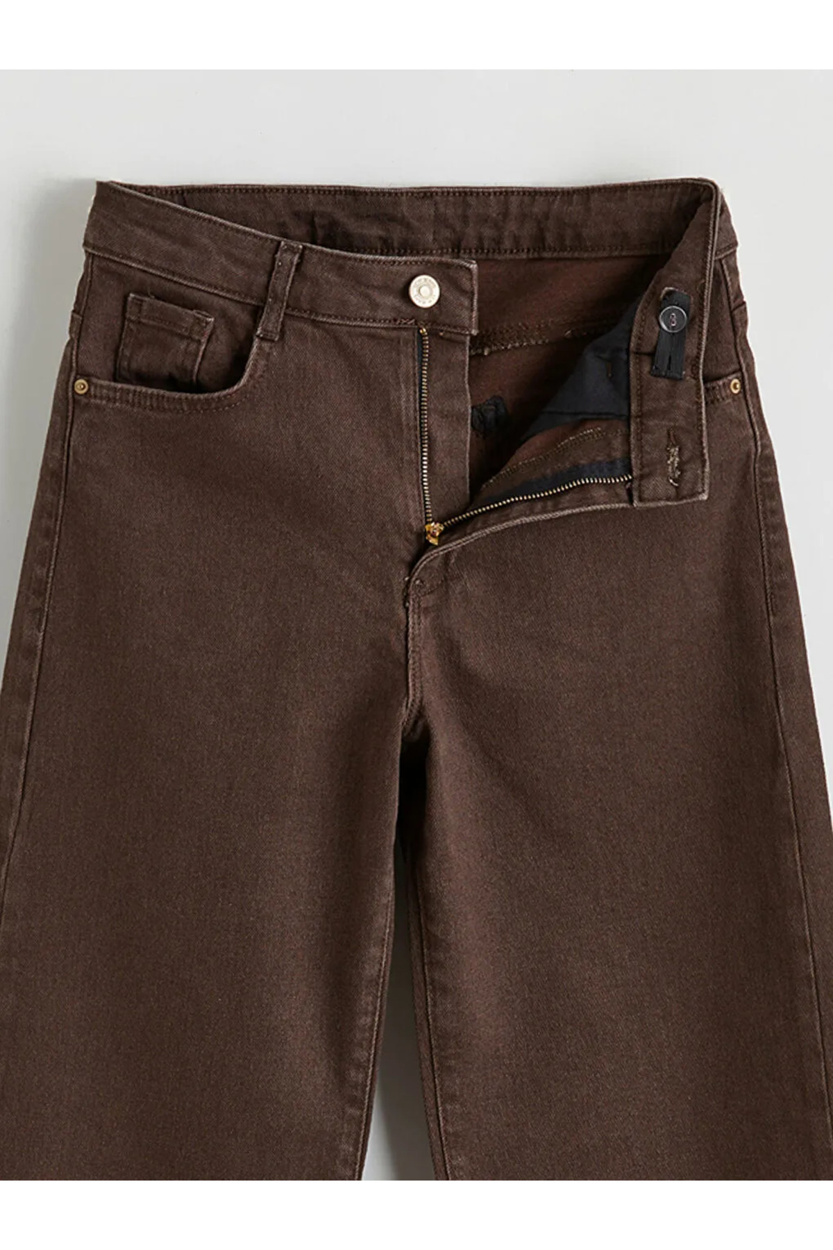 LCW Kids Kahverengi Wideleg Kız Çocuk Jean Pantolon