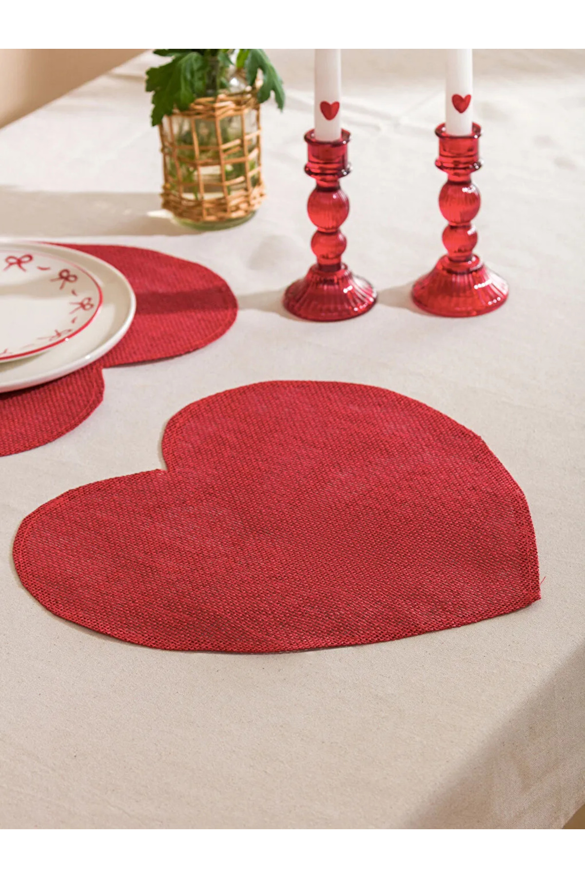 Kalp formunda tasarlanan Amerikan servis, hasır görünümlü dokuya sahiptir ve 39 cm genişliğindedir.