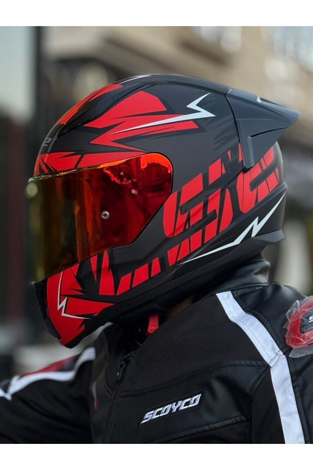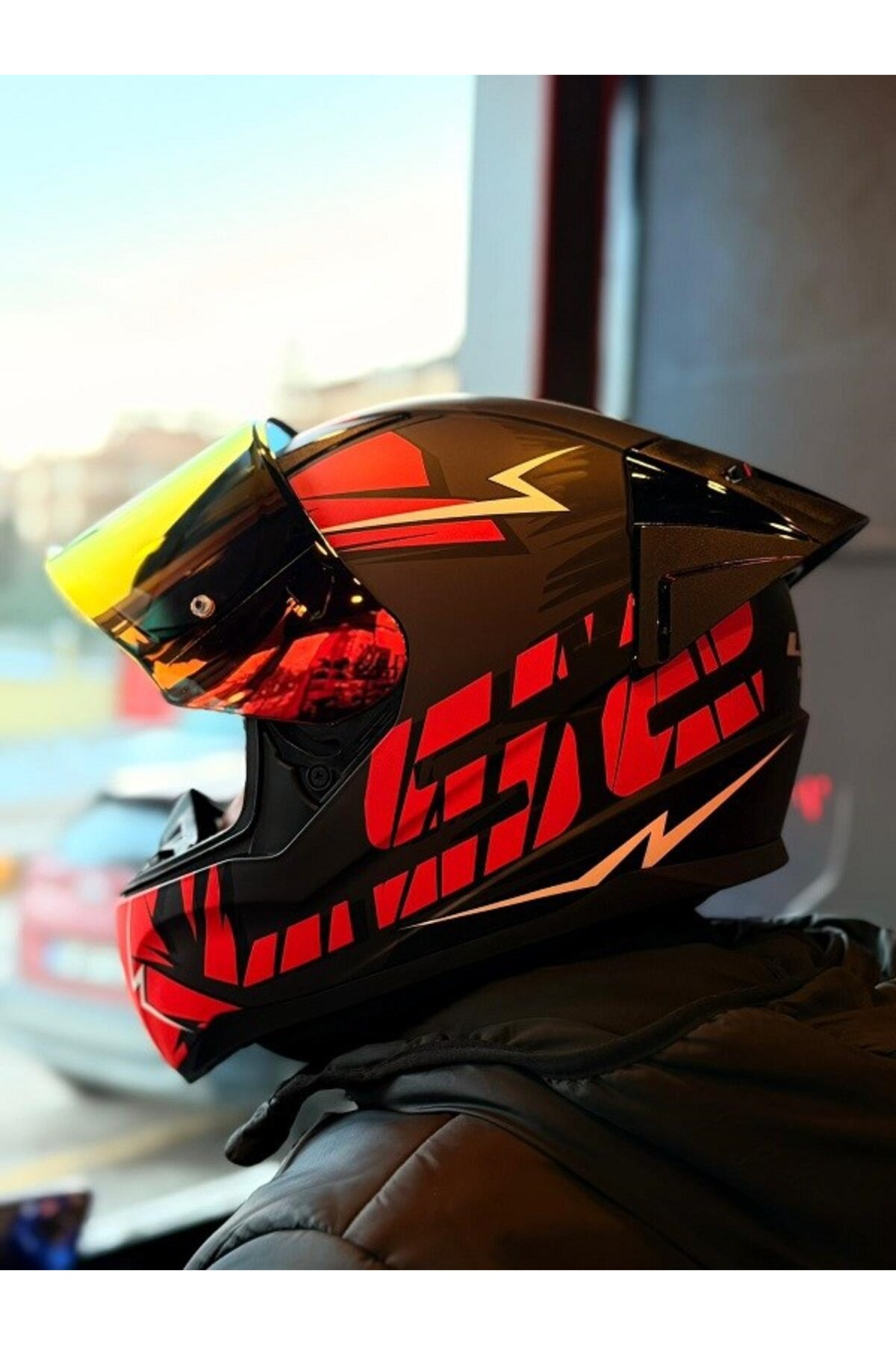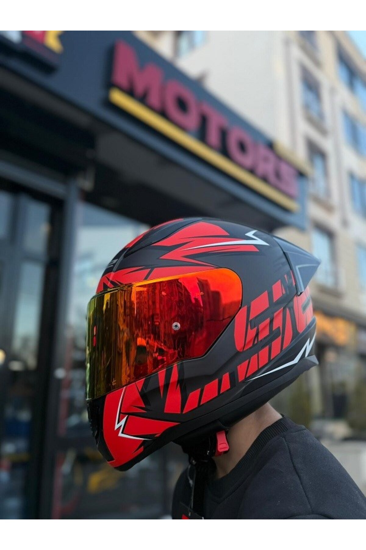 RAPID 2 CROMO MAT SİYAH-KIRMIZI KASK-KIRMIZI VİZÖR-SPOİLER (ÇİFT VİZÖRLÜ)