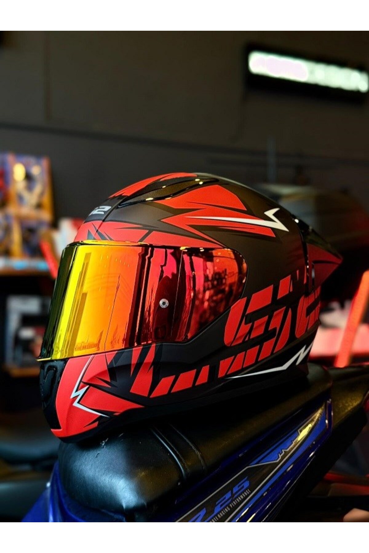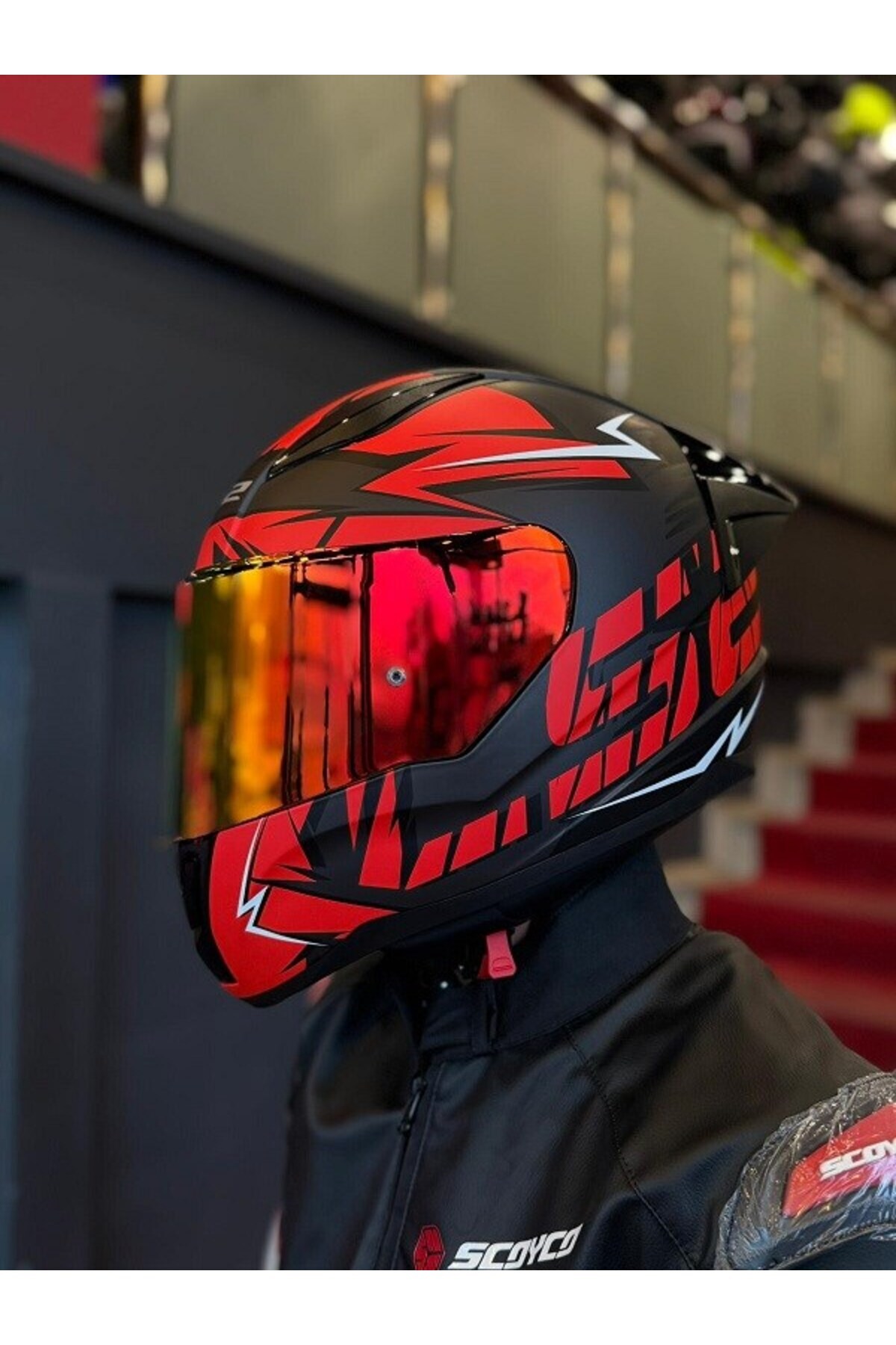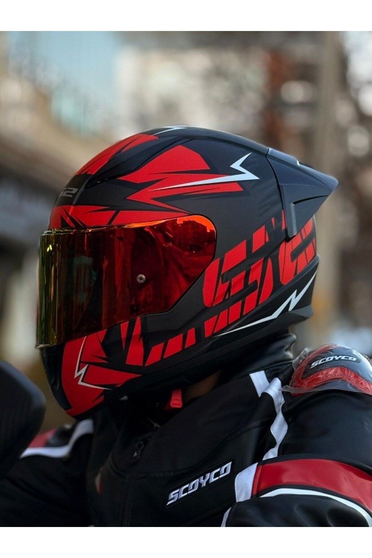 RAPID 2 CROMO MAT SİYAH-KIRMIZI KASK-KIRMIZI VİZÖR-SPOİLER (ÇİFT VİZÖRLÜ)