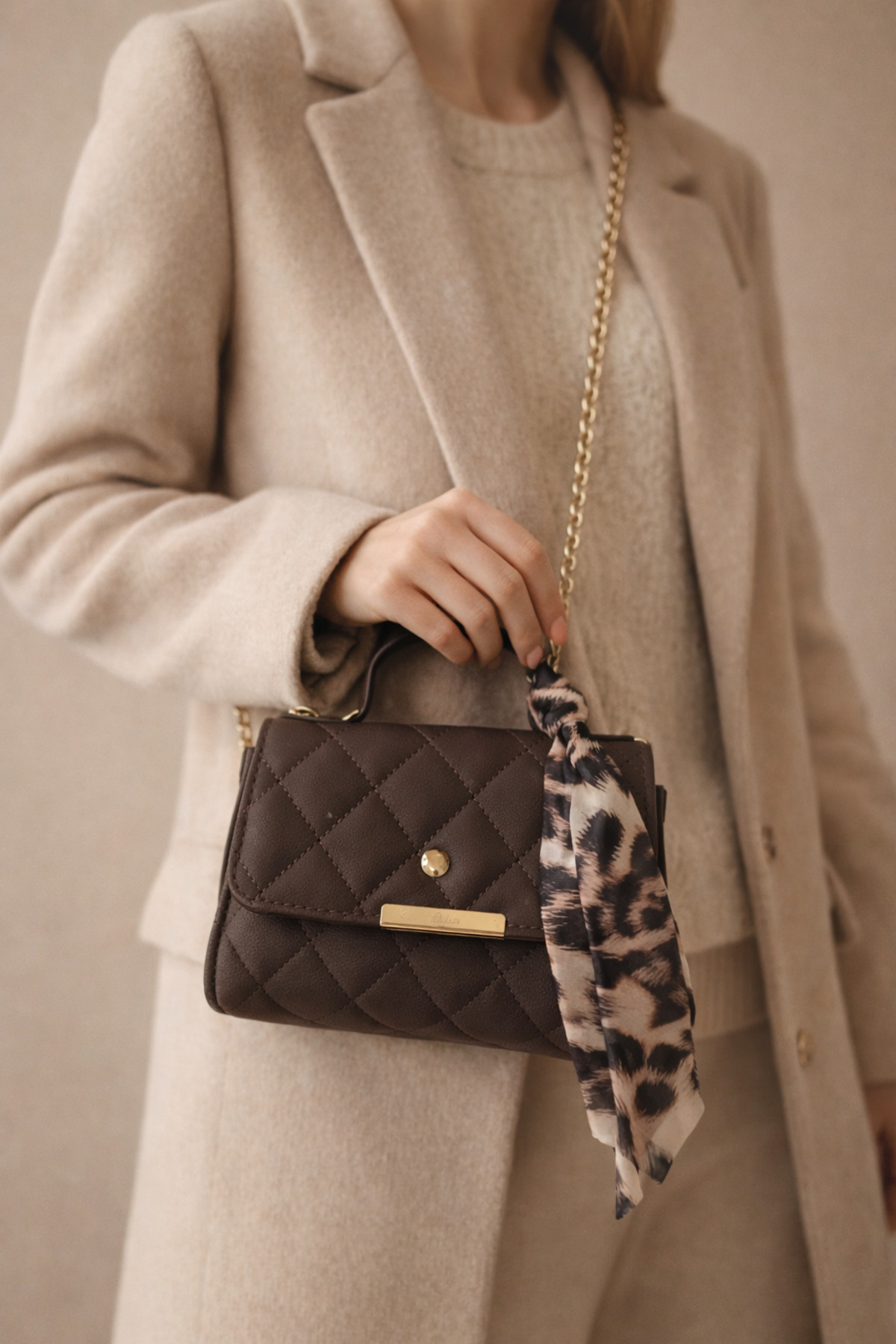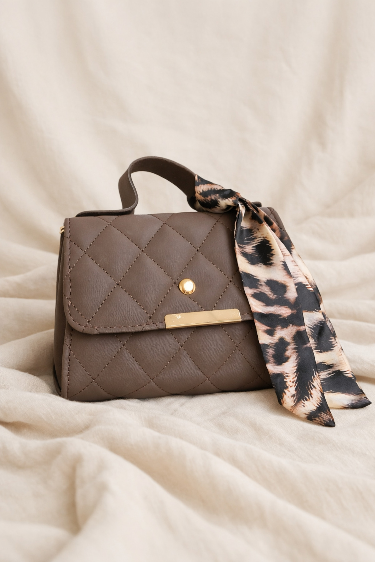 Vizon Kapitone Kadın Omuz Çantası – Zincir Askılı Şallı Mini El ve Çapraz Çanta
