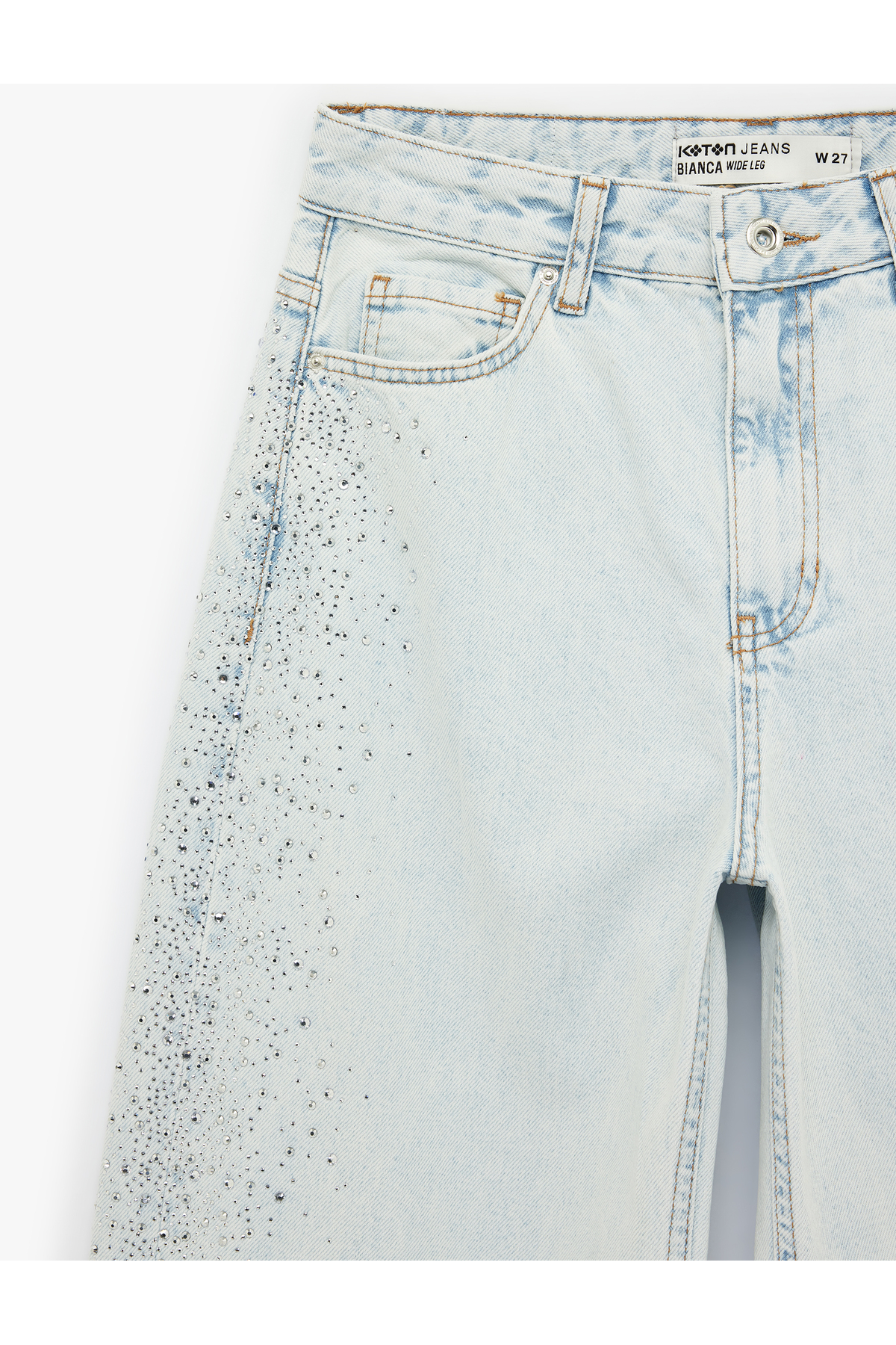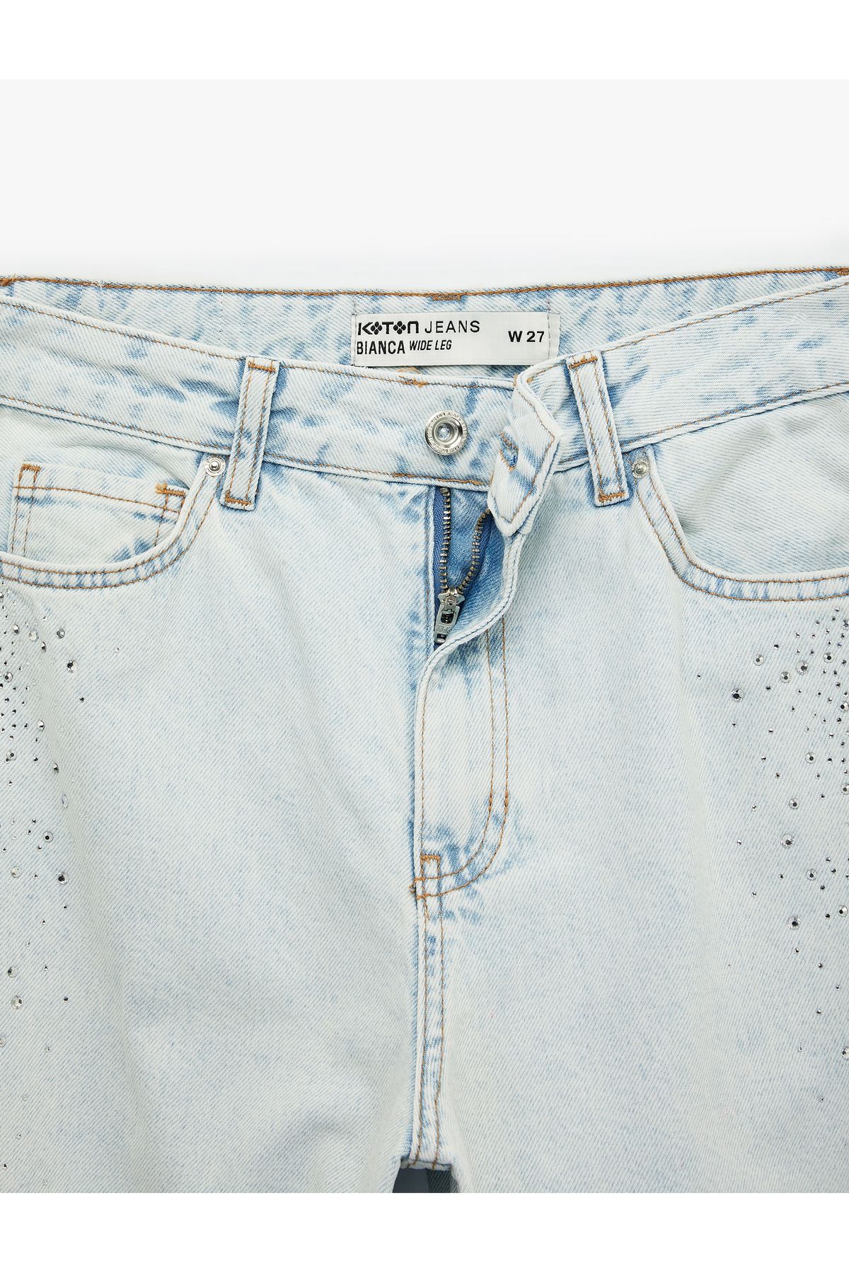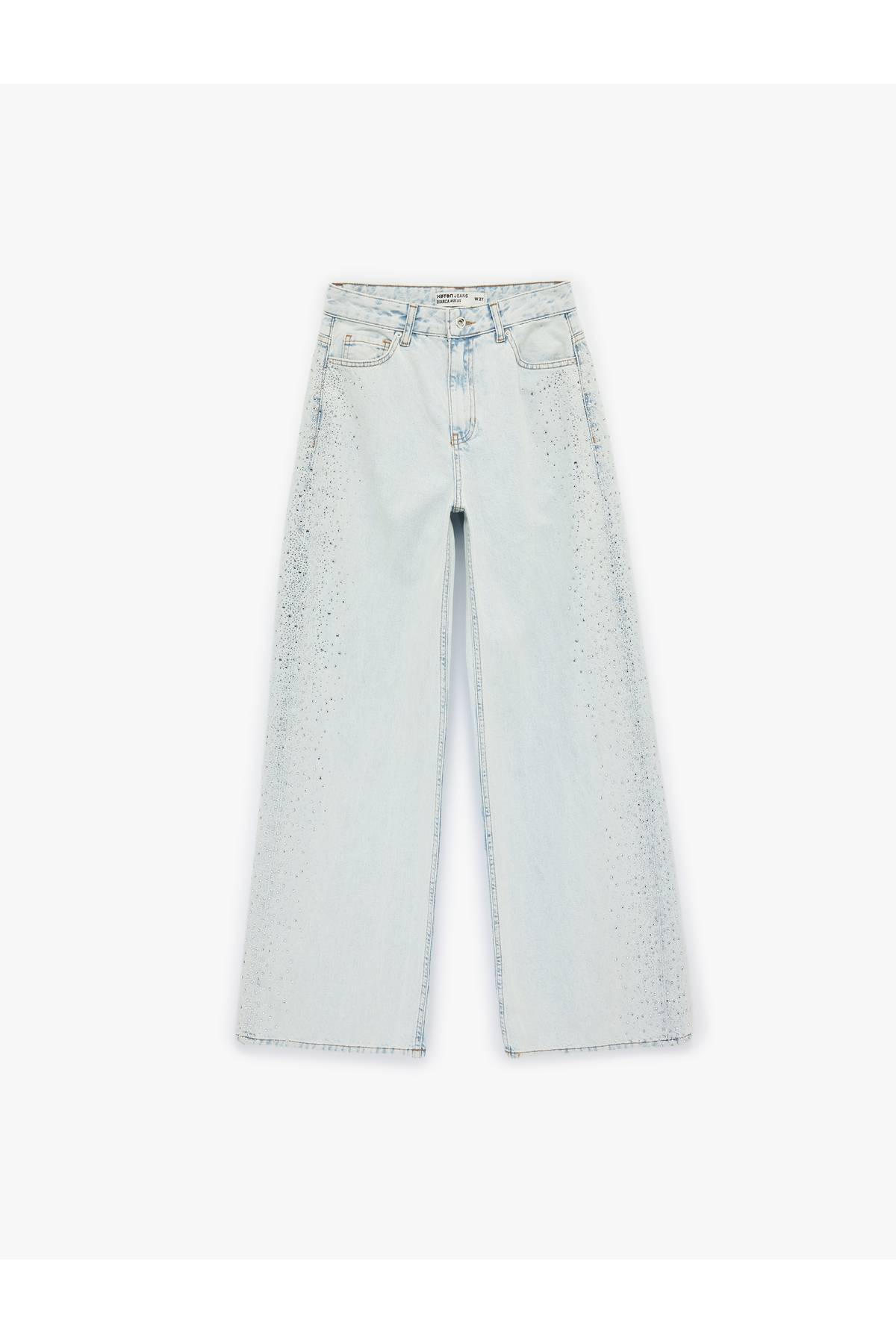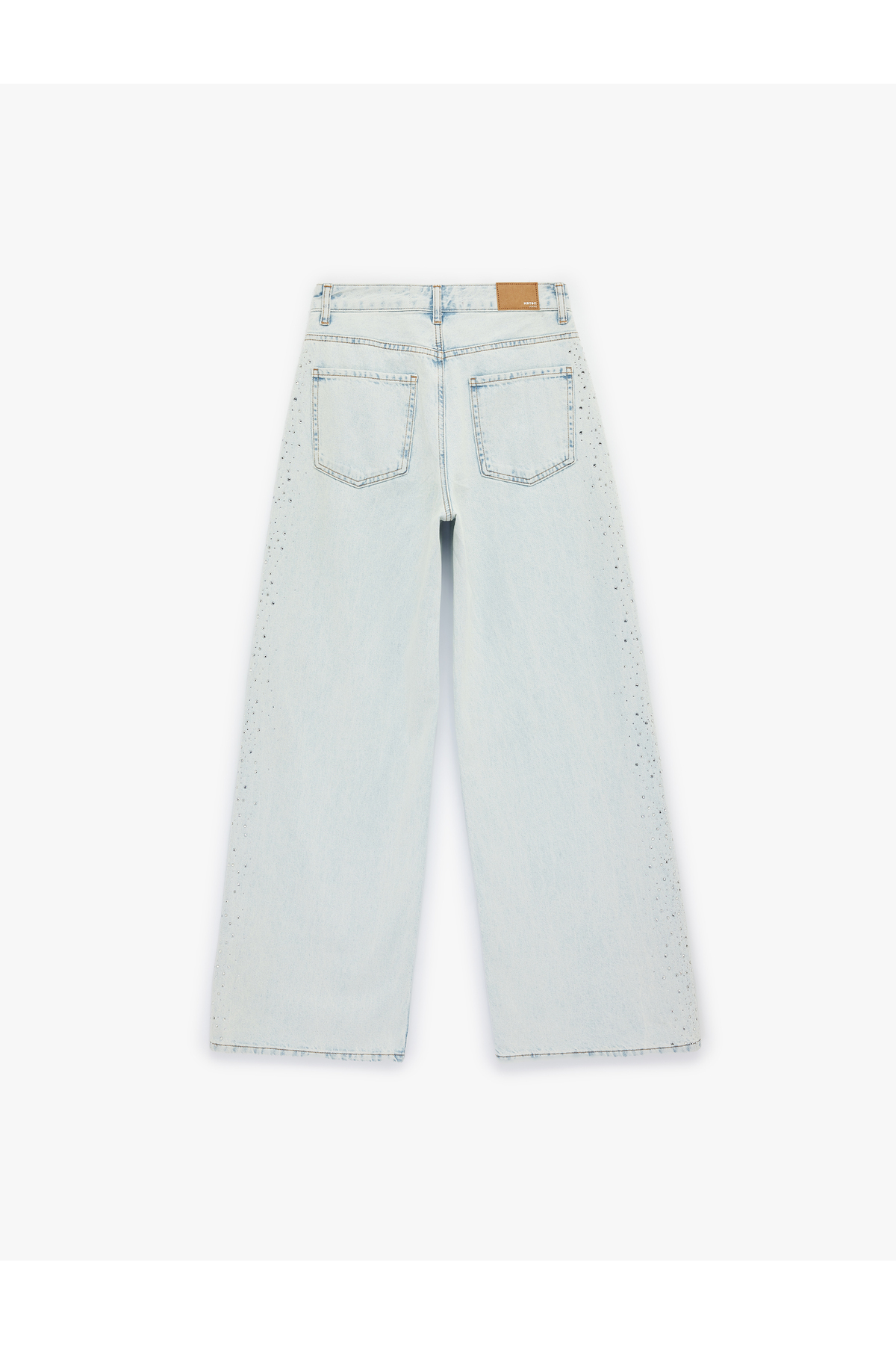 Pamuklu Düğmeli Cepli Geniş Paça Taşlı Denim Pantolon - Wide Leg Jeans