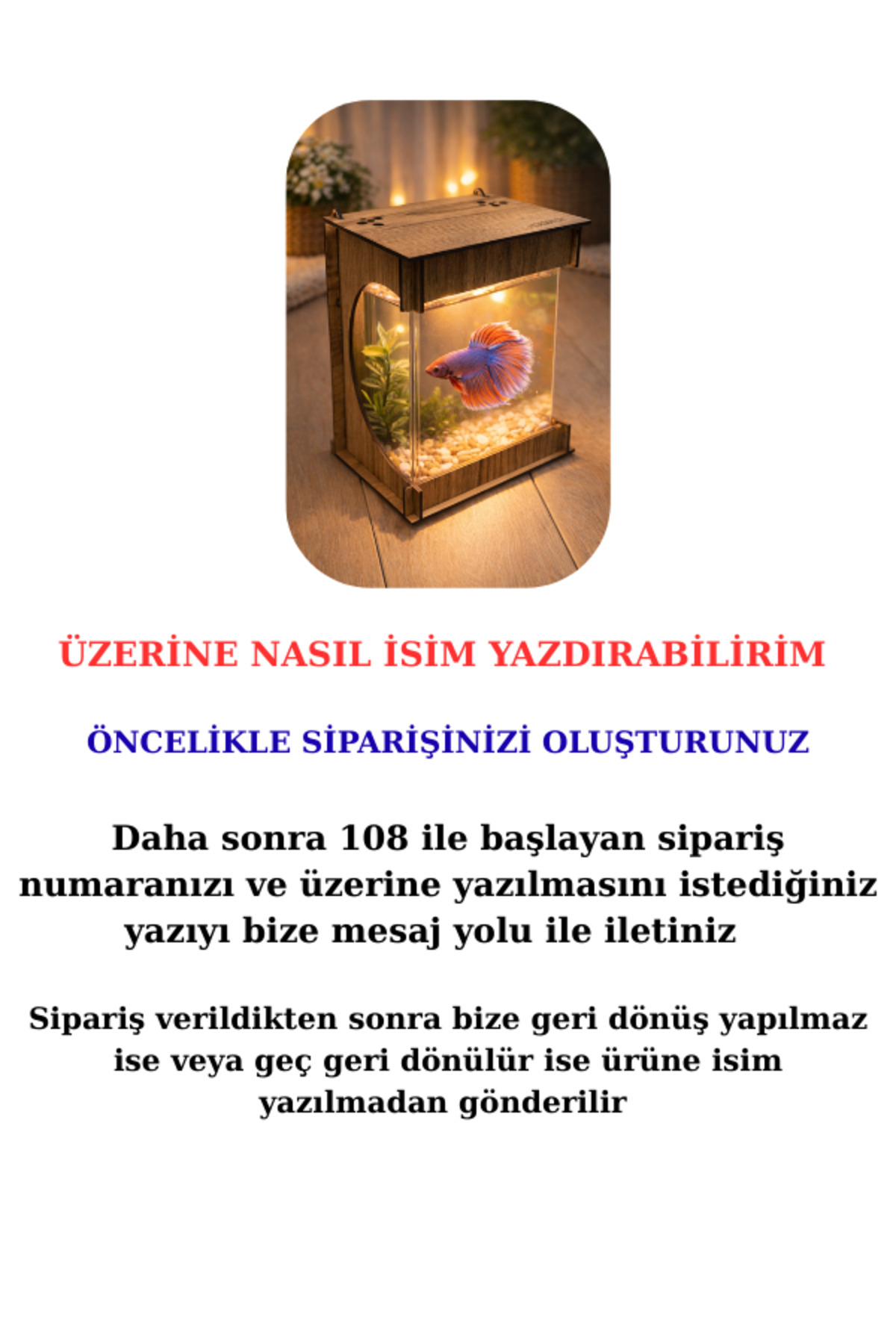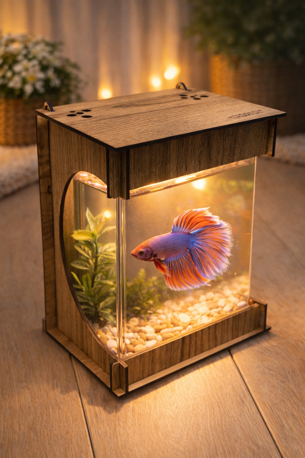 Beta Mini Ledli ışıklı Akvaryum Ahşap Tasarım Hediyelik Kişiye özel Üretim