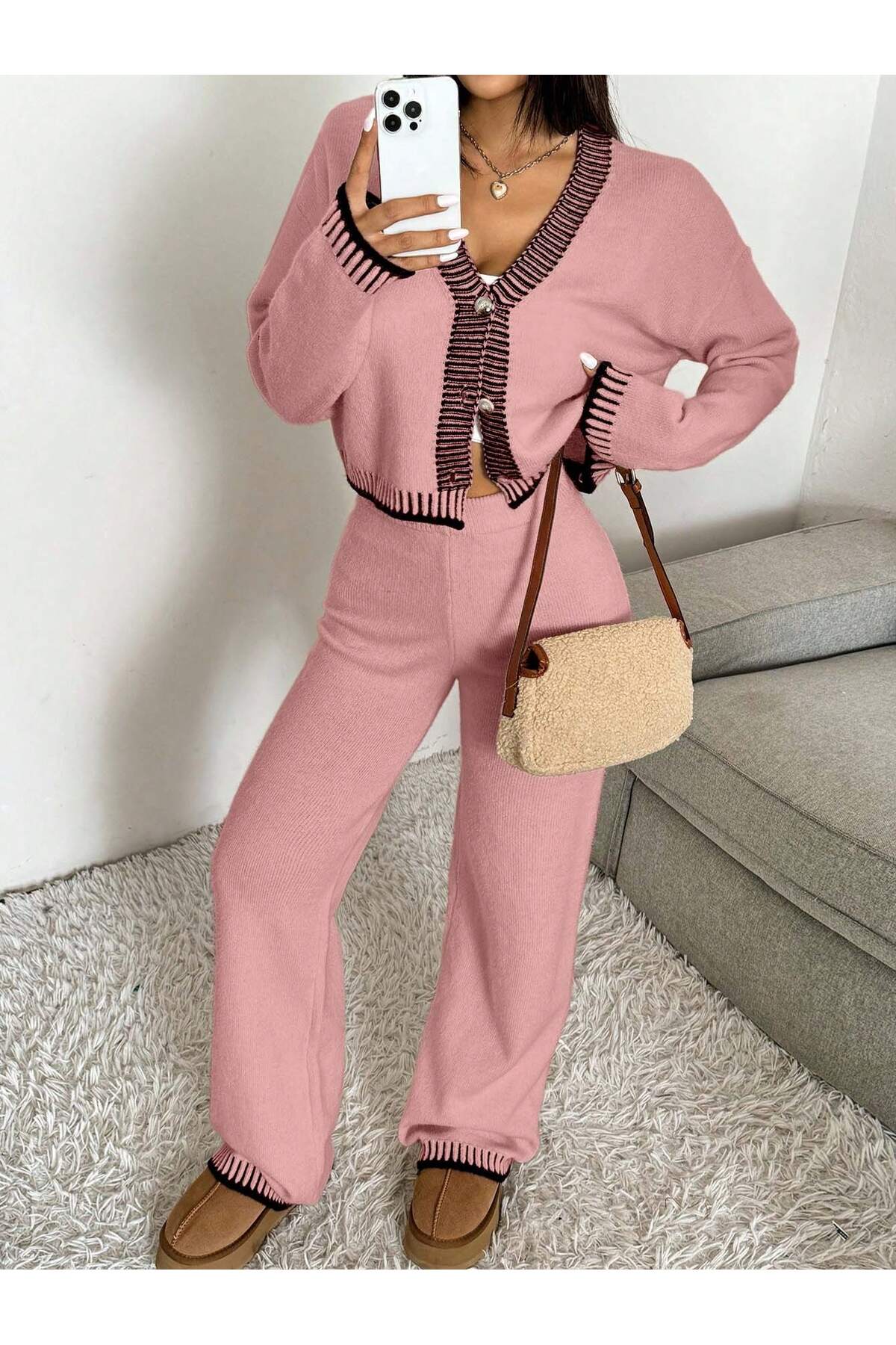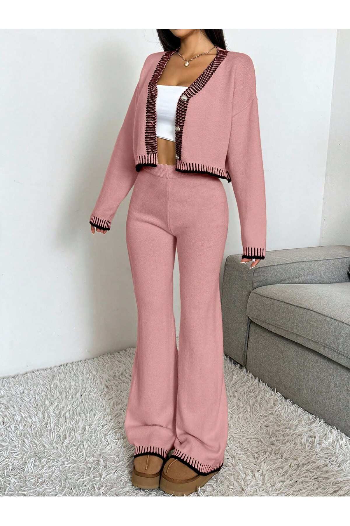 - Modern ve şık tasarımıyla dikkat çeken düz desenli triko takım, günlük kullanım için idealdir.
