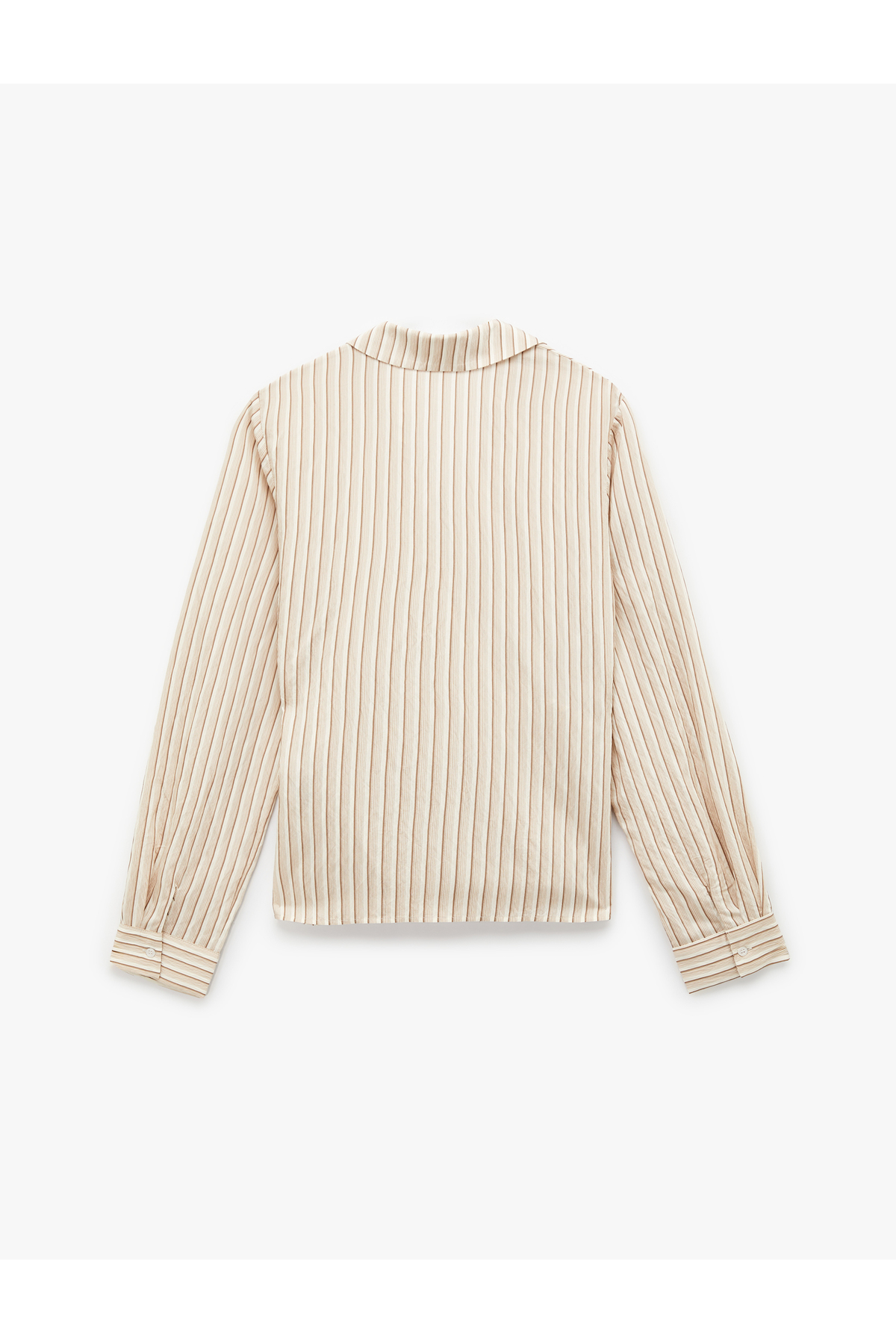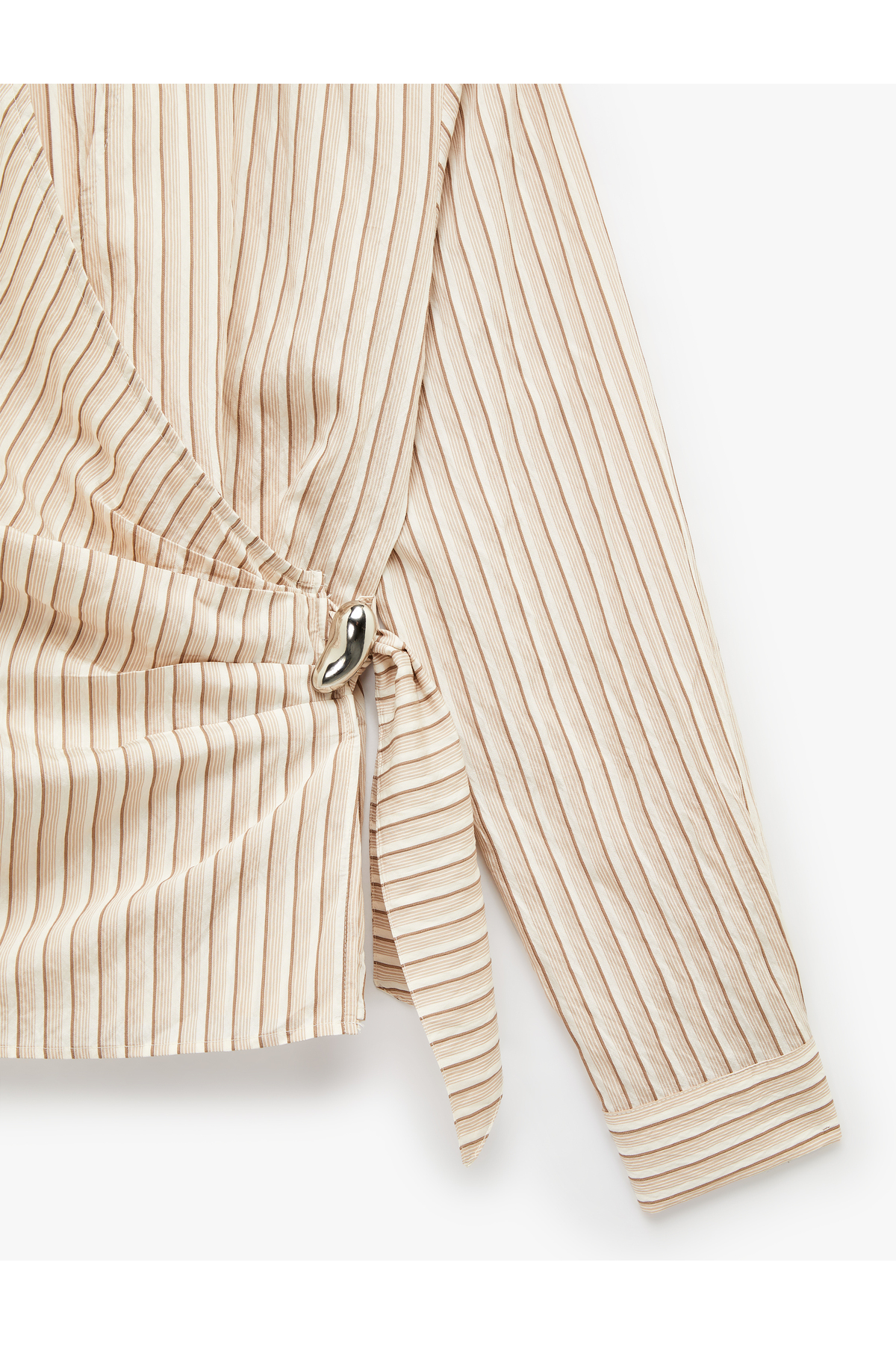 Uzun Kollu Aksesuarlı Yandan Bağlama Detaylı Kruvaze Çizgili Gömlek