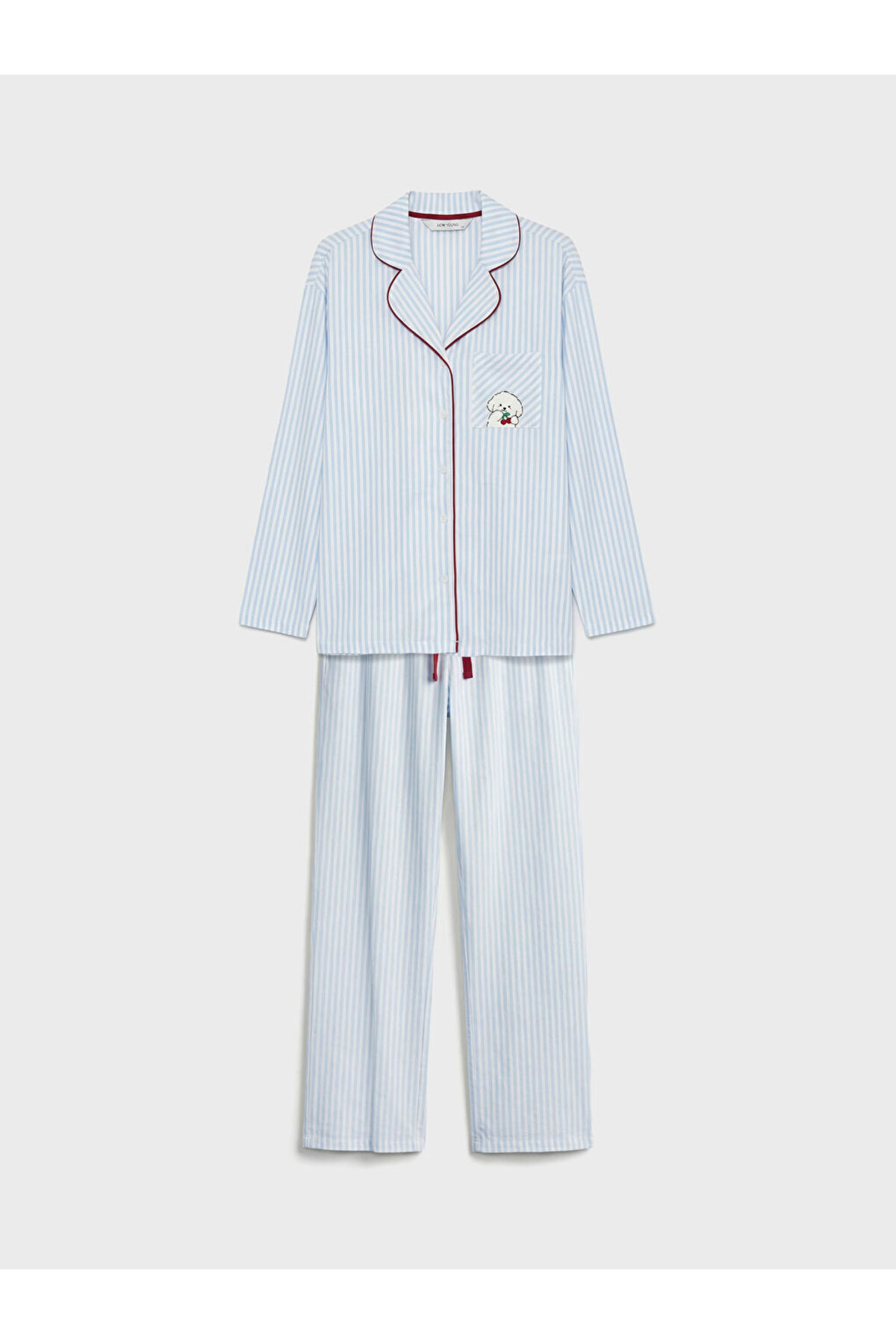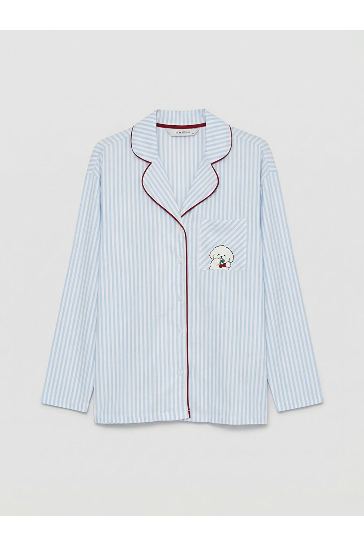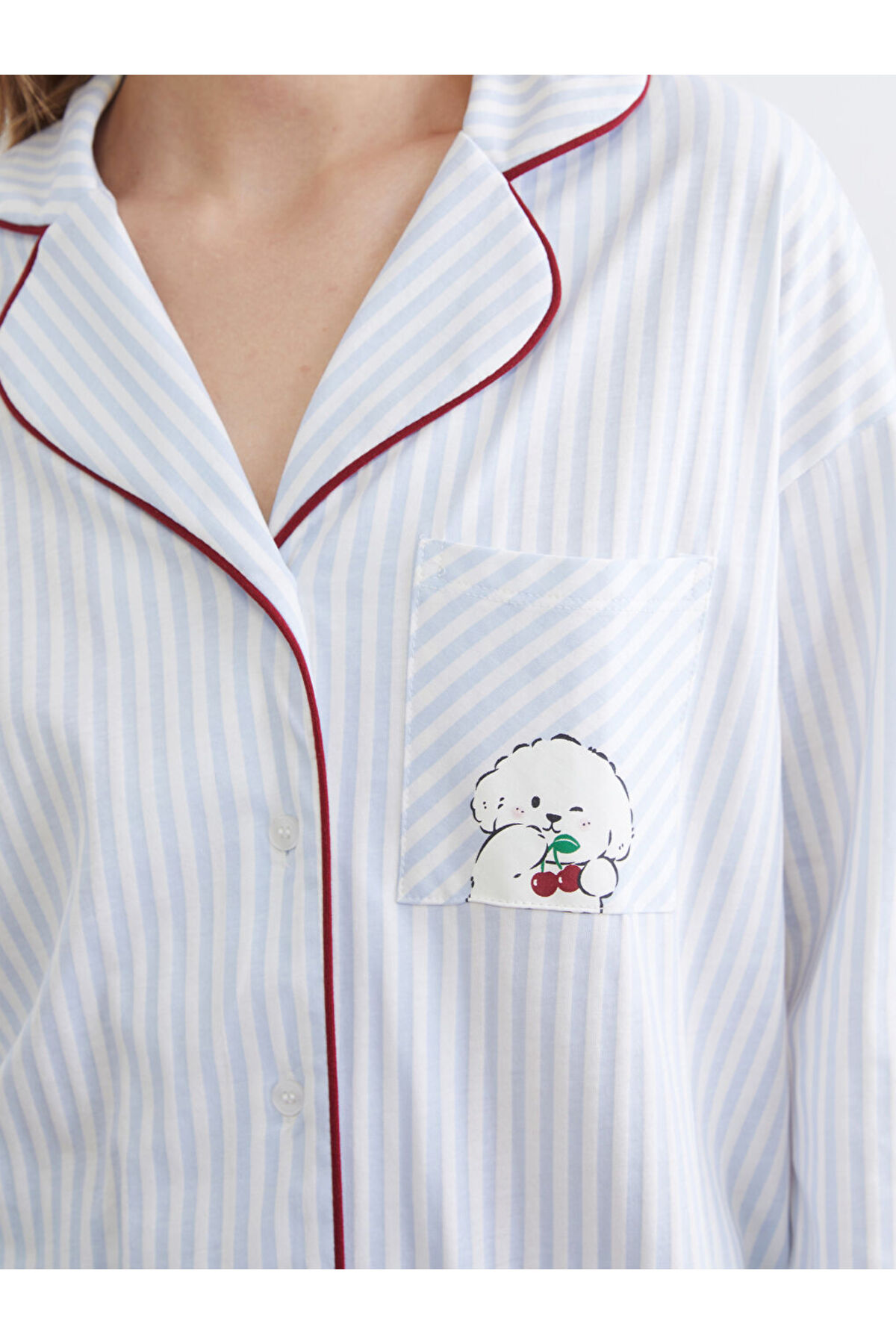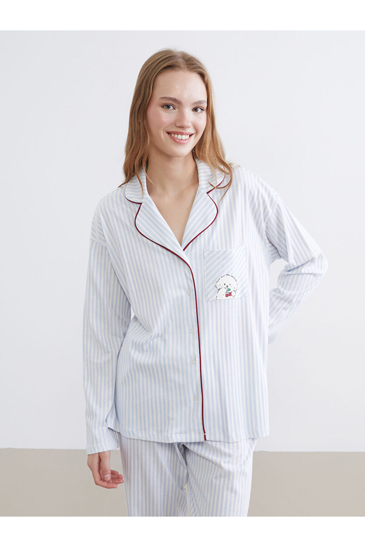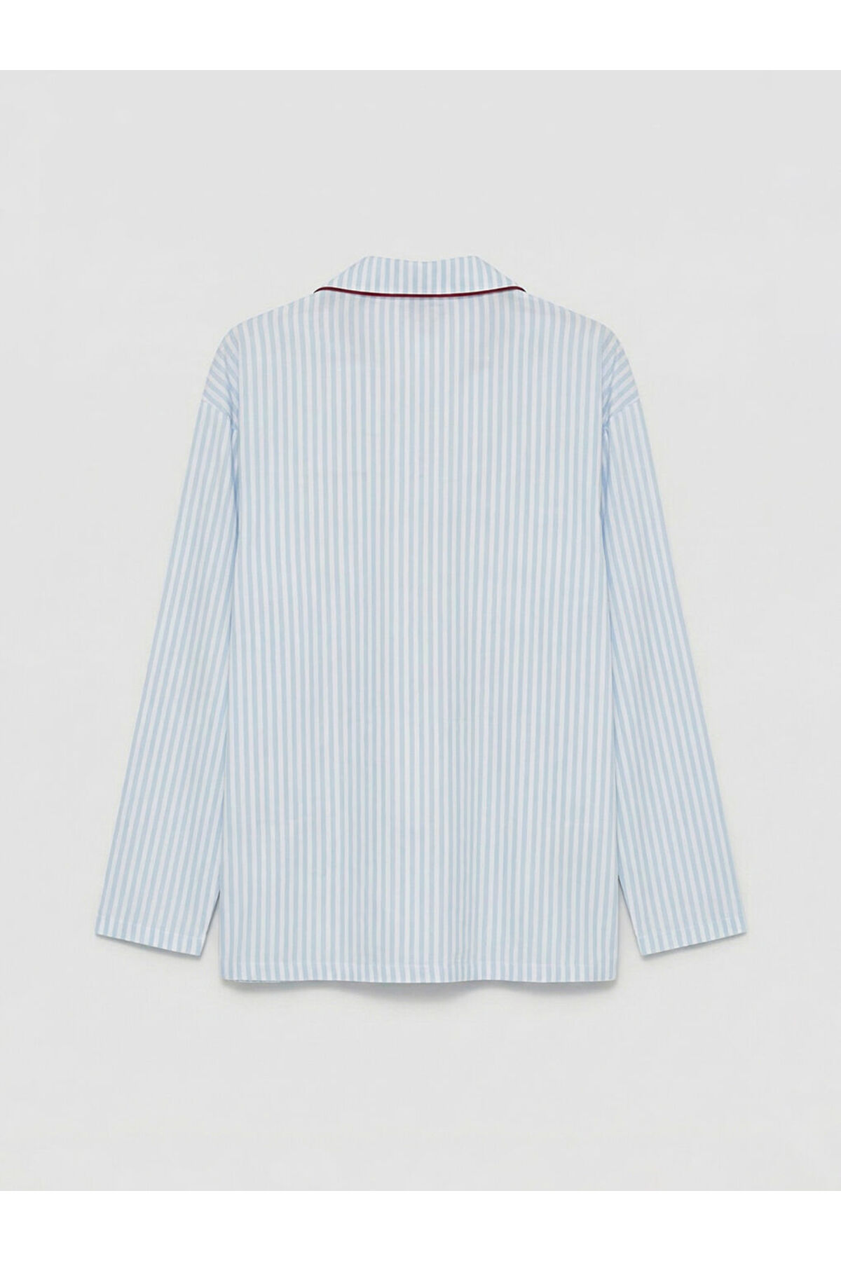 Mavi Gömlek Yaka Çizgili Kadın Pijama Takımı