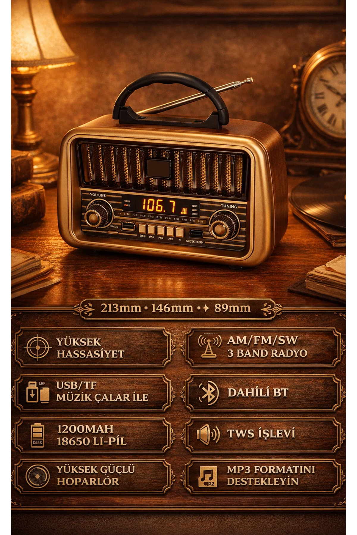 Retro Tasarım Şarj Edilebilir Radyo ve Bluetooth Hoparlör - SD Kart - FM Radyo