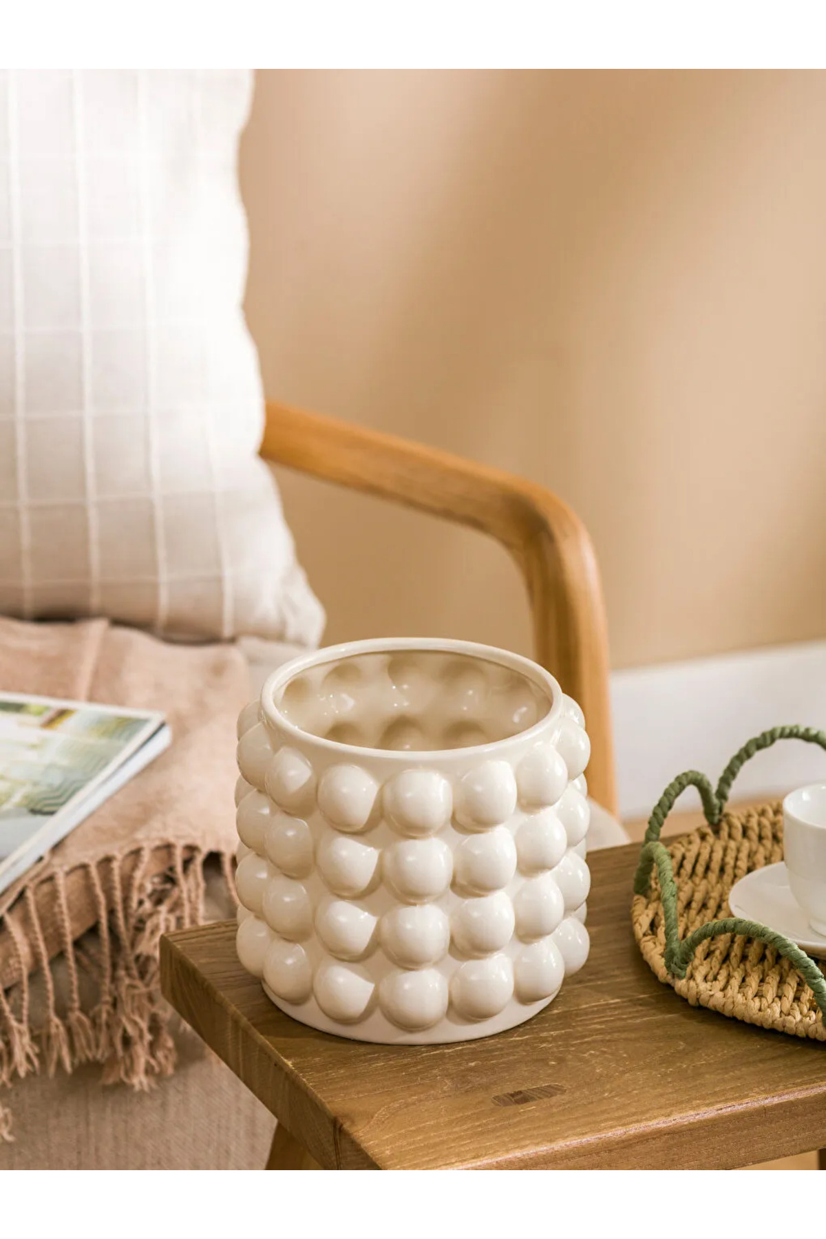 LCW HOME Bej Desenli Seramik VAZO Saksı 13 Cm