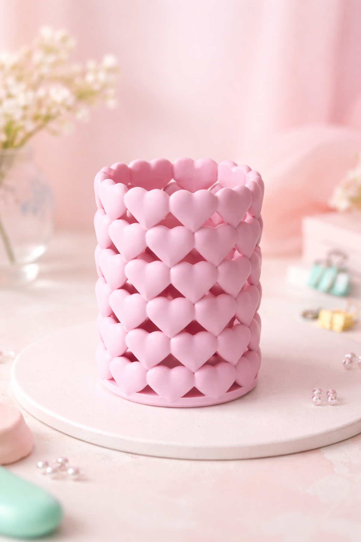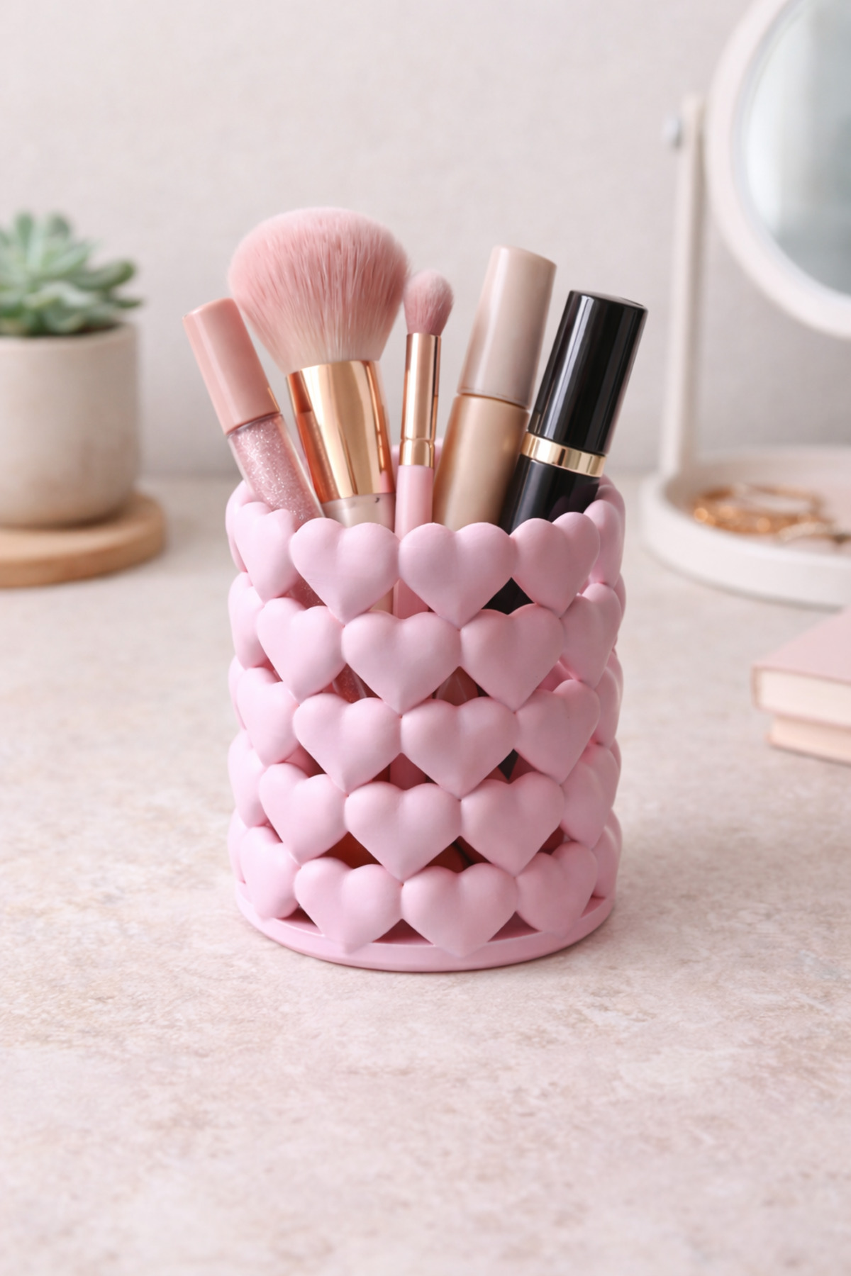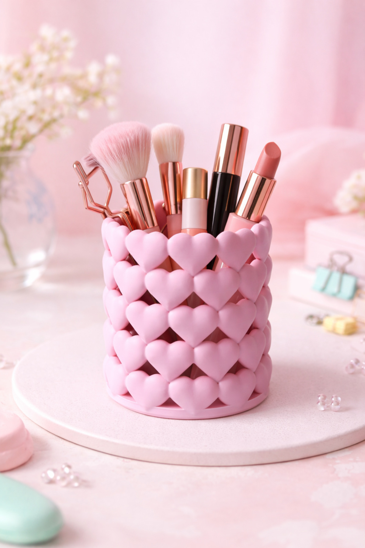 Kalpli Organizer Makyaj Fırçalık, Kalemlik ve Aksesuar Düzenleyici Kalpli Şekilli