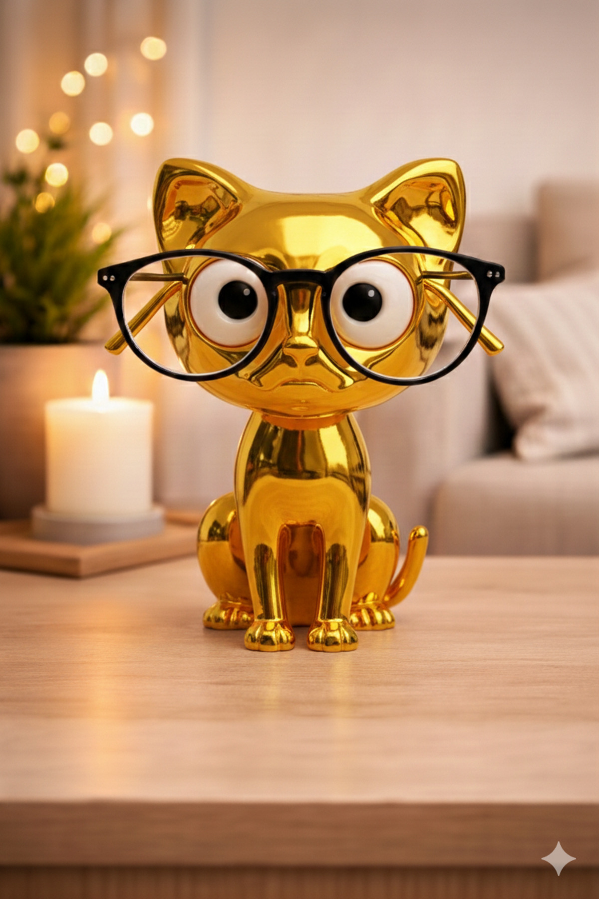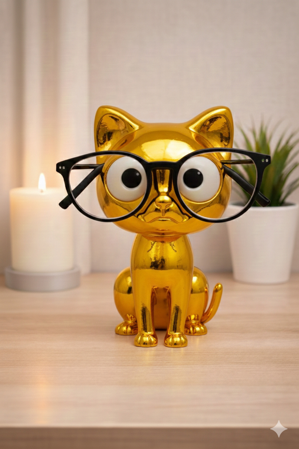 SEVİMLİ SİYAH KEDİ Gözlük Standı Altın Dekoratif Gözlük Tutucu Masaüstü Gözlük Standı