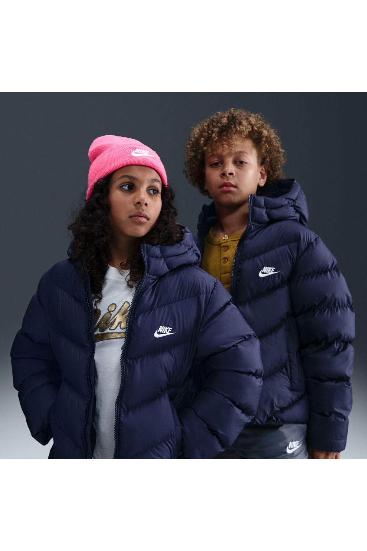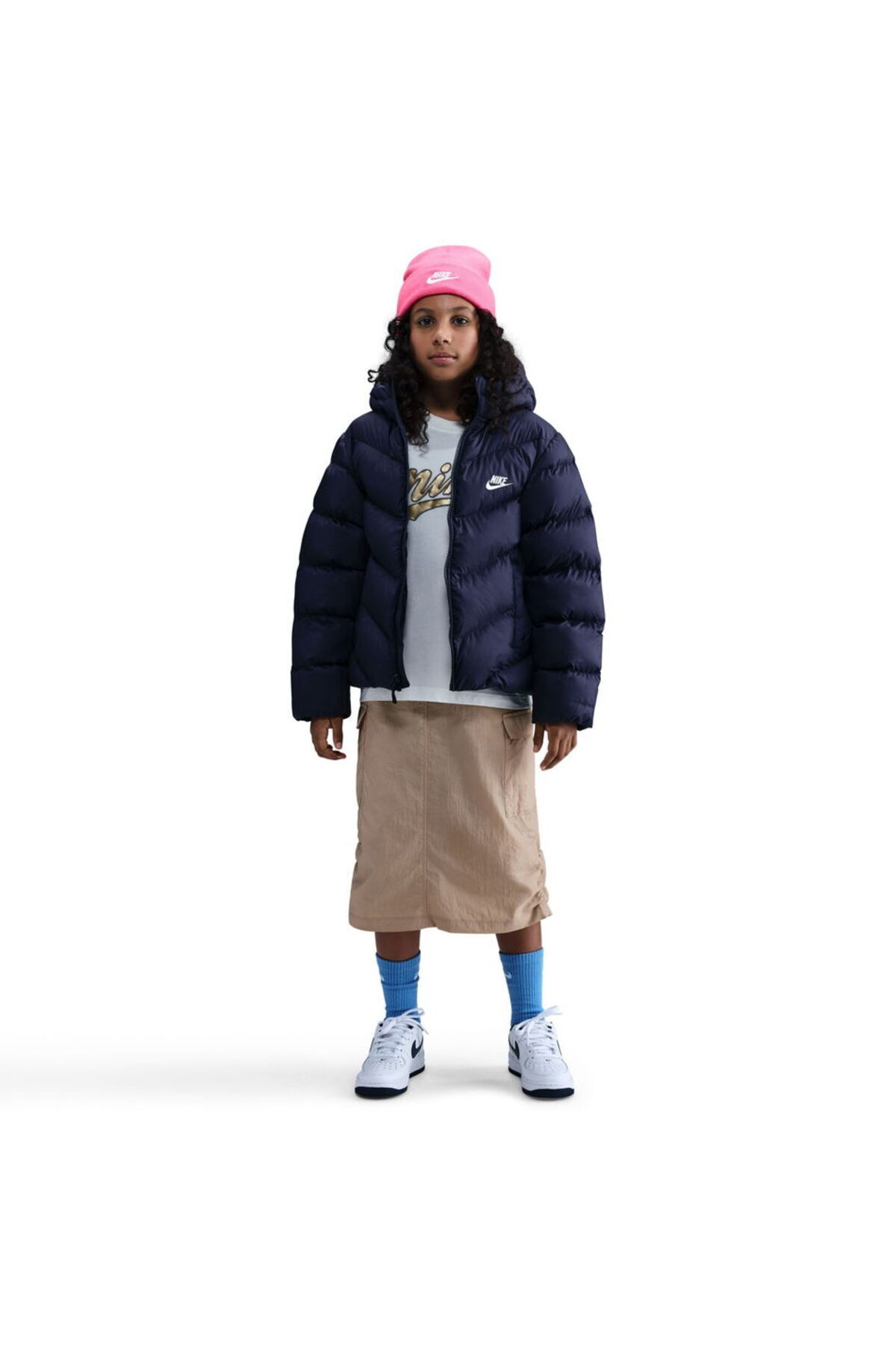 Nike çocuk mont, üst yüzeyi %100 polyester olup sentetik yalıtım ve Nike’ın Therma-FIT teknolojisi bir araya gelerek vücudun doğal ısısını korumaya yardımcı olur.